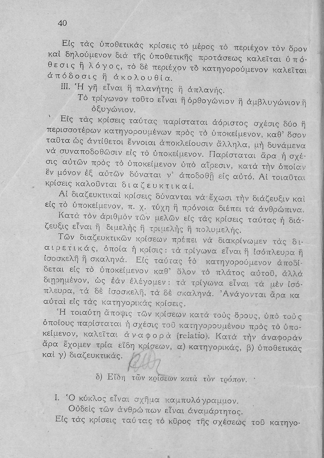Στοιχειώδης λογική μετά στοιχείων γνωσιολογίας προς χρήσιν των μαθητών της ΣΤ΄ τάξεως των Εξαταξίων Γυμνασίων παλαιού τύπου