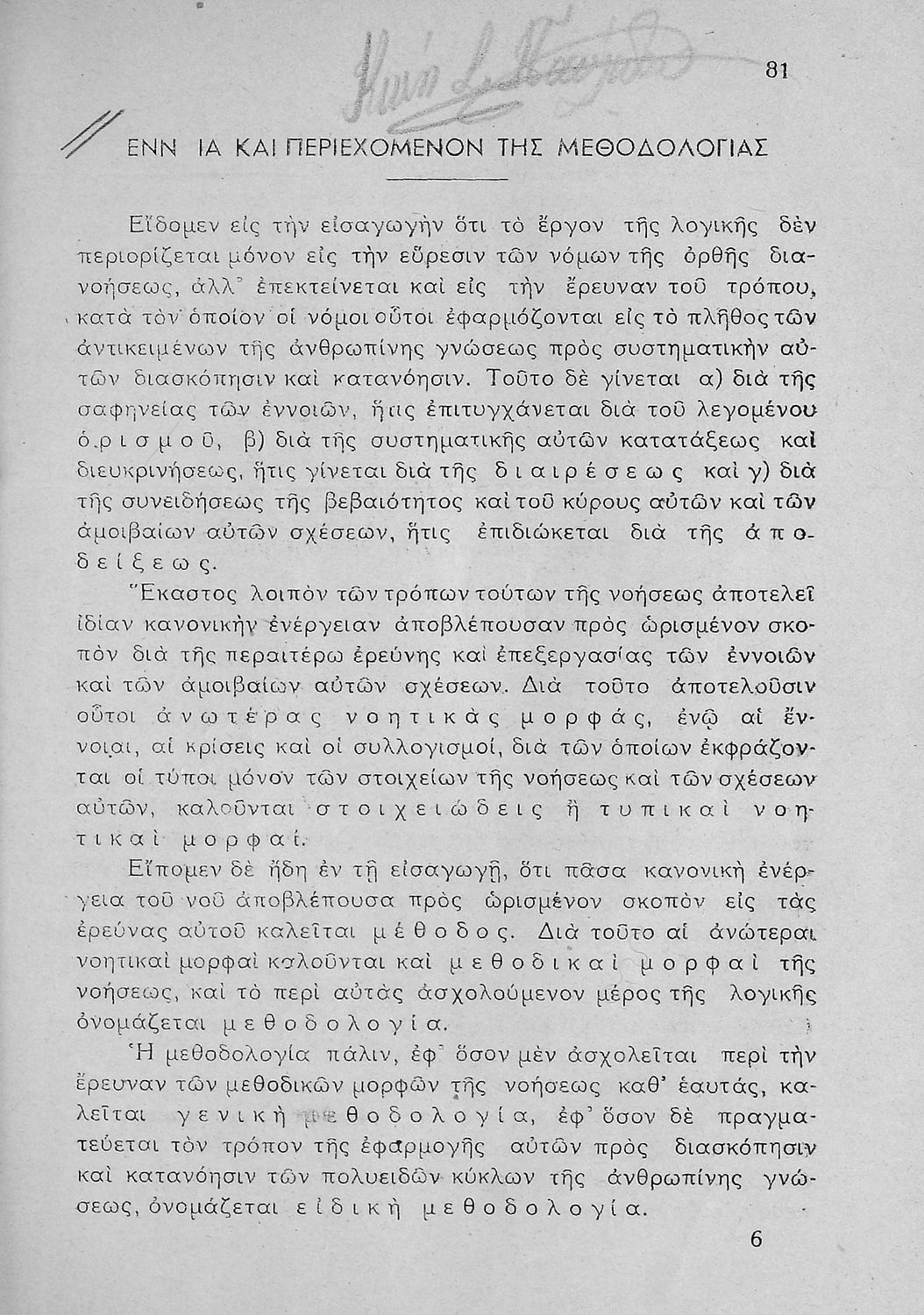 Τίτλος: Στοιχειώδης λογική μετά στοιχείων γνωσιολογίας προς χρήσιν των μαθητών της ΣΤ΄ τάξεως των Εξαταξίων Γυμνασίων παλαιού τύπου