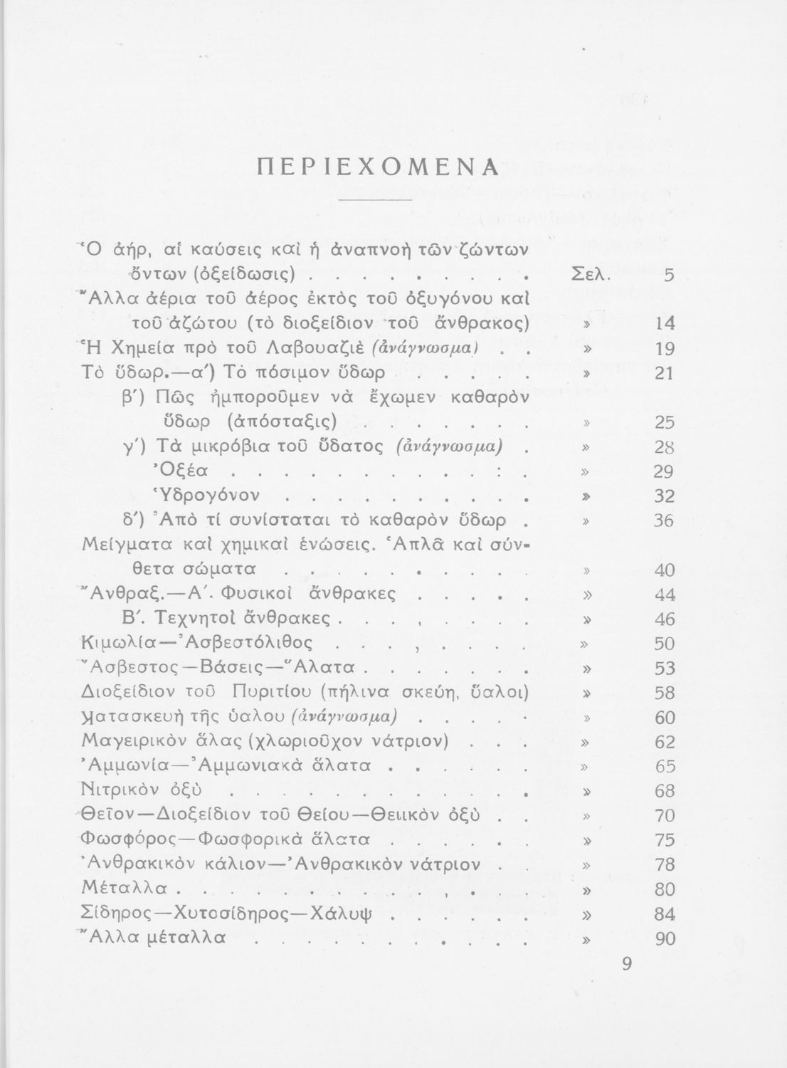 Το συγκεκριμένο εγχειρίδιο αφορά το μάθημα της Χημείας και αναφέρεται σε μαθητές της Β΄ τάξης των Οκταταξίων Γυμνασίων. Περιγράφει τις χημικές ενώσεις των σωμάτων και τα μείγματα τους, φυσικούς και τεχνικούς άνθρακες, βάσεις, άλατα, οξέα και αναλύεται η σύσταση διάφορων μετάλλων
