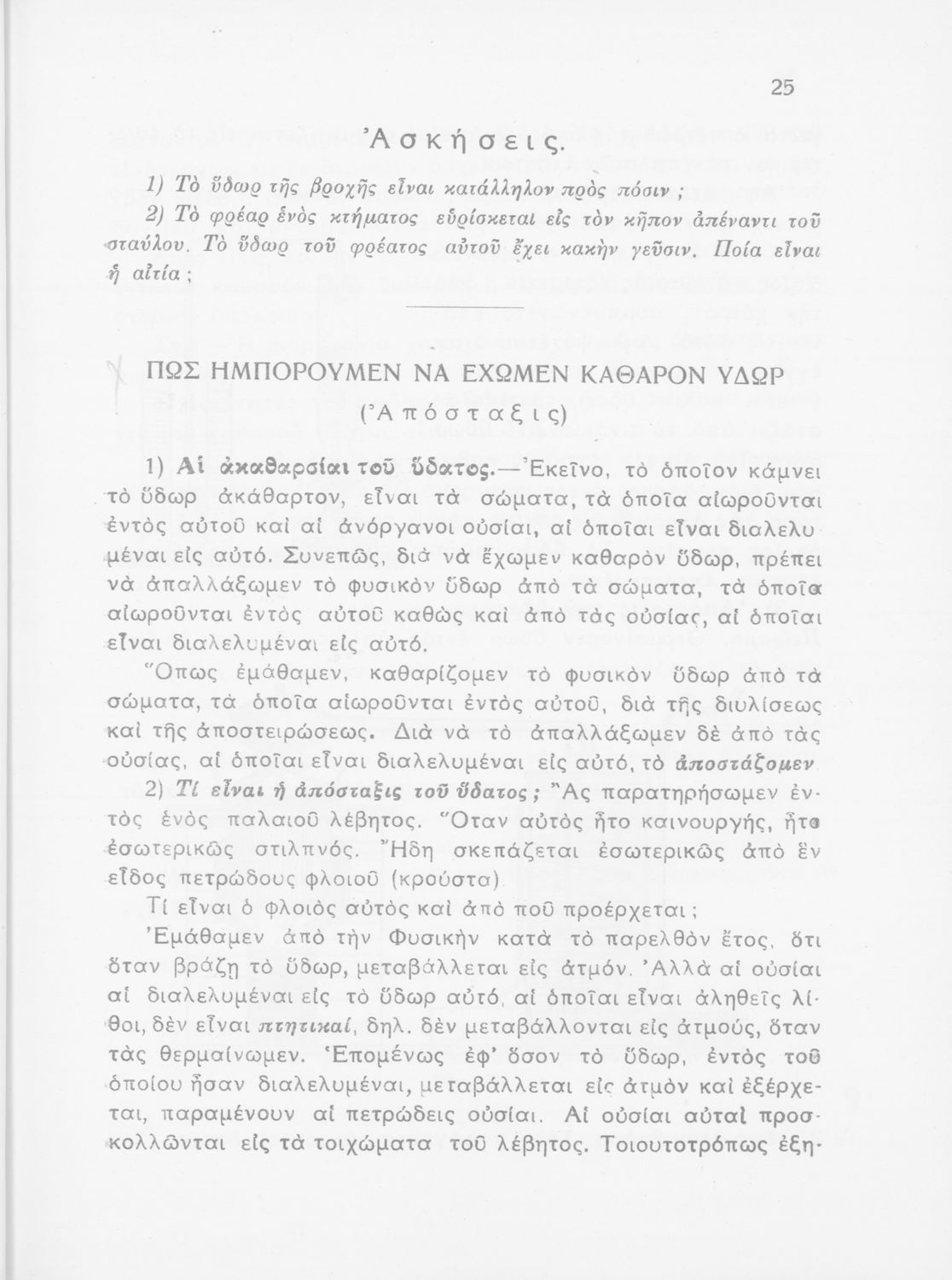 Το συγκεκριμένο εγχειρίδιο αφορά το μάθημα της Χημείας και αναφέρεται σε μαθητές της Β΄ τάξης των Οκταταξίων Γυμνασίων. Περιγράφει τις χημικές ενώσεις των σωμάτων και τα μείγματα τους, φυσικούς και τεχνικούς άνθρακες, βάσεις, άλατα, οξέα και αναλύεται η σύσταση διάφορων μετάλλων