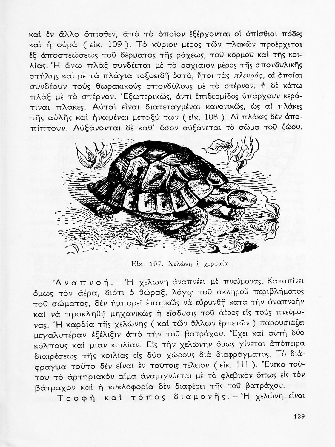 Σχολικό εγχειρίδιο Ζωολογίας για την Γ΄ τάξη των Εξαταξίων Γυμνασίων που παρουσιάζει τα διάφορα ζώα ανάλογα με την συνομοταξία στην οποία ανήκουν.