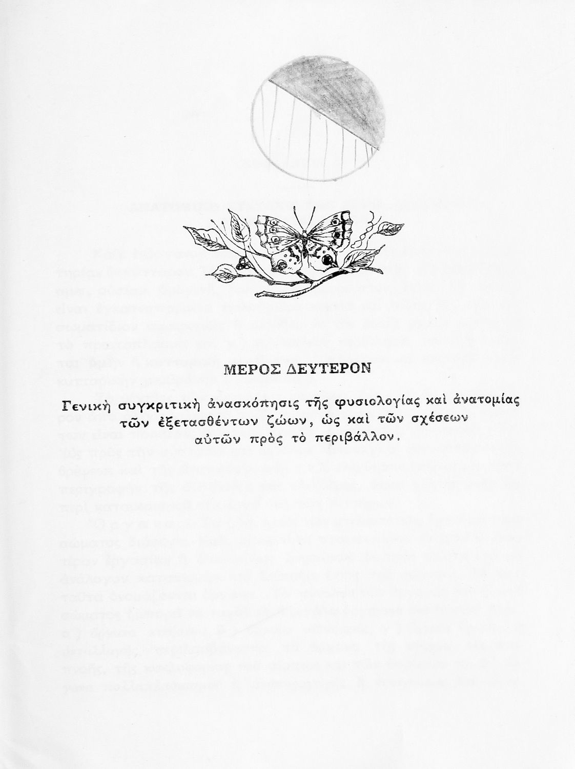 Σχολικό εγχειρίδιο Ζωολογίας Α΄ Γυμνασίου που εστιάζει στη φυσιολογία και ανατομία και παρουσιάζει τα διάφορα ζώα ανάλογα με την συνομοταξία στην οποία ανήκουν. Φέρει το σύμβολο της δικτατορίας.