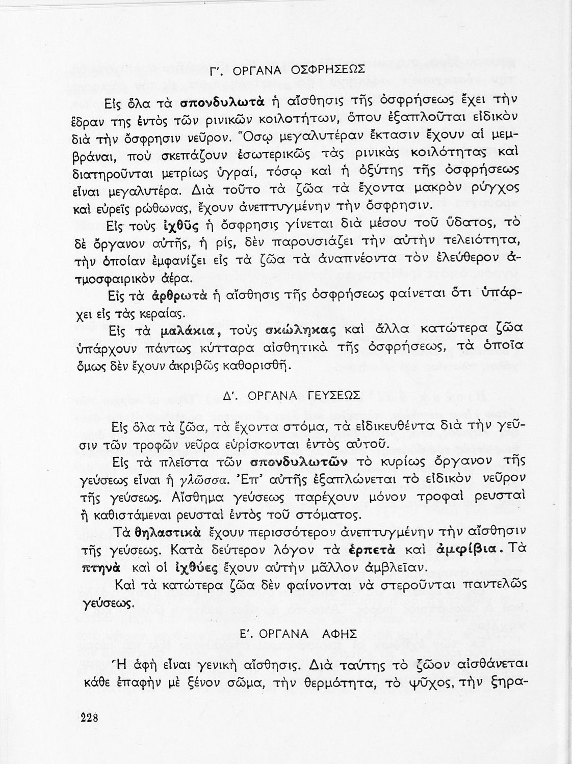 Σχολικό εγχειρίδιο Ζωολογίας για την Γ΄ τάξη των Εξαταξίων Γυμνασίων που παρουσιάζει τα διάφορα ζώα ανάλογα με την συνομοταξία στην οποία ανήκουν.