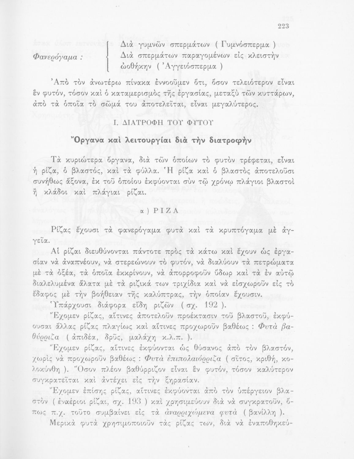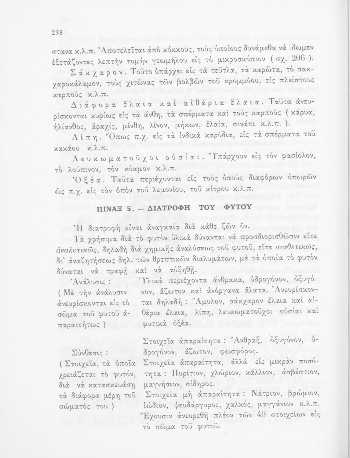 Εγχειρίδιον Φυτολογίας, Α΄ Γυμνασίου