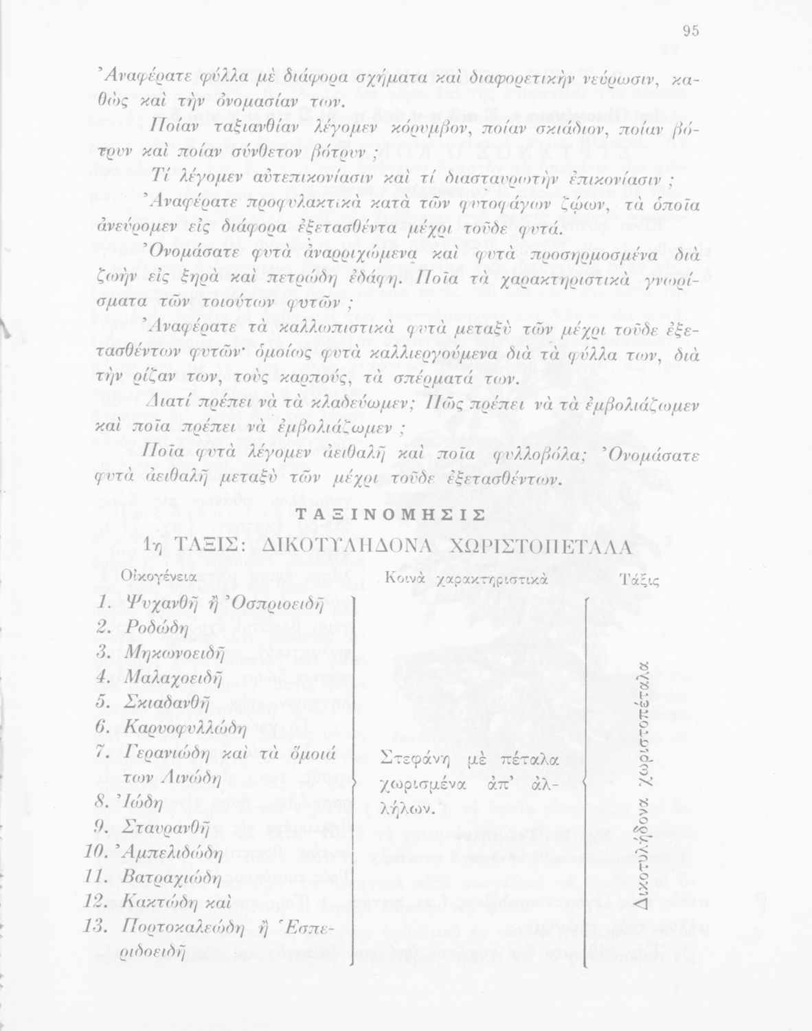 Εγχειρίδιον Φυτολογίας, Α΄ Γυμνασίου