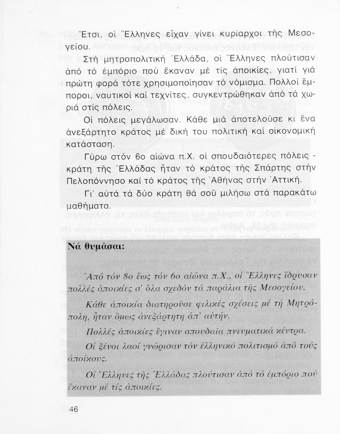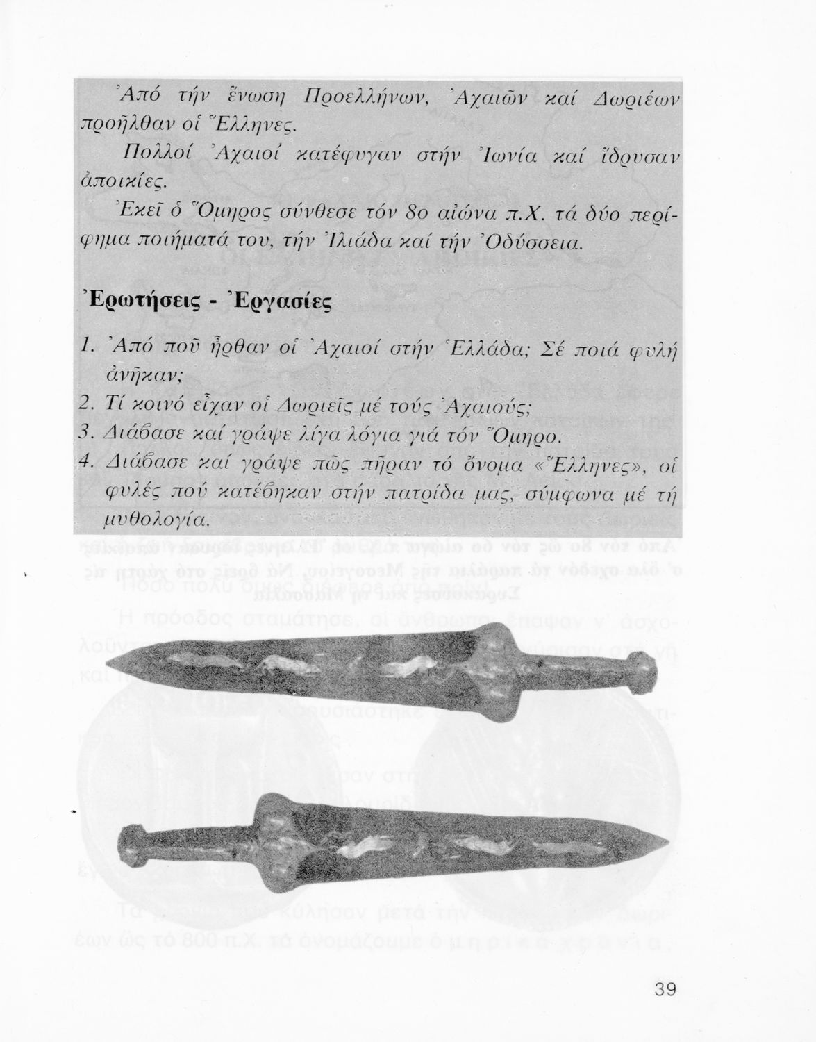 Σχολικό εγχειρίδιο Ιστορίας Δ' Δημοτικού που καλύπτει την περίοδο από τα προϊστορικά χρόνια μέχρι και τη Μακεδονική Ηγεμονία. Εστιάζει στον ελληνικό χώρο και πολιτισμό και στις πολεμικές συγκρούσεις.