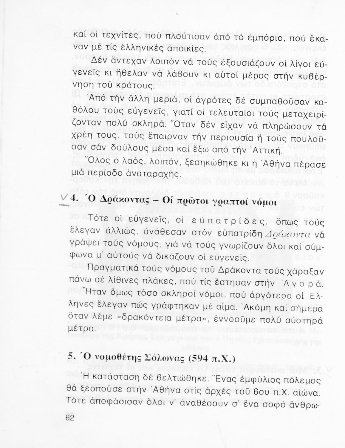 Σχολικό εγχειρίδιο Ιστορίας. Δ' Δημοτικού που καλύπτει την περίοδο από την κάθοδο των Δωριέων ως την κατάληψη της Ελλάδας από τους Ρωμαίους. Αποσκοπεί στην καλλιέργεια της εθνικής συνείδησης και της ιστορικής ...