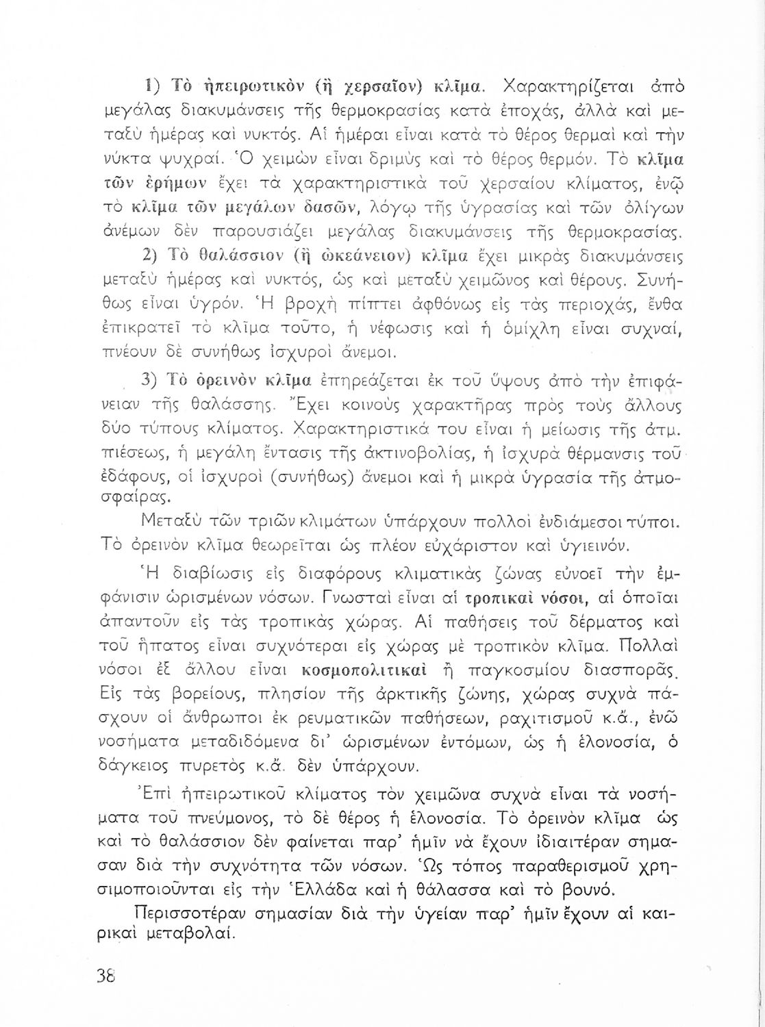 Βαθμίδα εκπαίδευσης: Δευτεροβάθμια Τάξη: Ε' Γυμνασίου Μάθημα: Υγιεινή Γλώσσα: Απλή καθαρεύουσα Παρουσίαση περιεχομένου: Σχολικό εγχειρίδιο Υγιεινής για την Ε΄ Γυμνασίου που εστιάζει περιβαντολλογική διάσταση της υγιεινής, τα λοιμώδη νοσήματα, και την κοινωνική υγιεινή. |