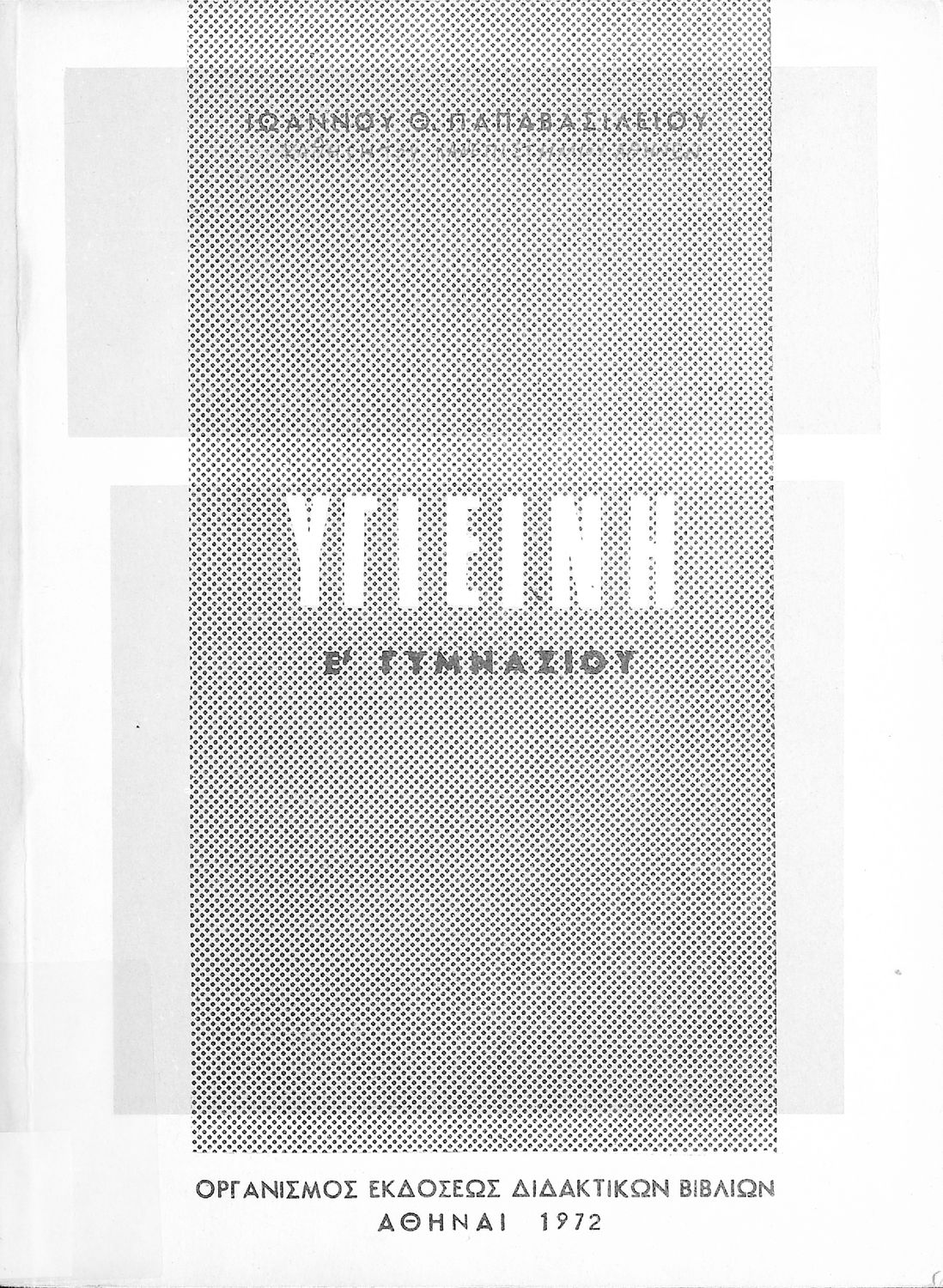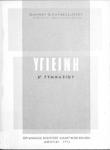 Σχολικό εγχειρίδιο Υγιεινής για την Ε΄ Γυμνασίου που εστιάζει στην περιβαντολλογική διάσταση της υγιεινής. Φέρει το σύμβολο της δικτατορίας.