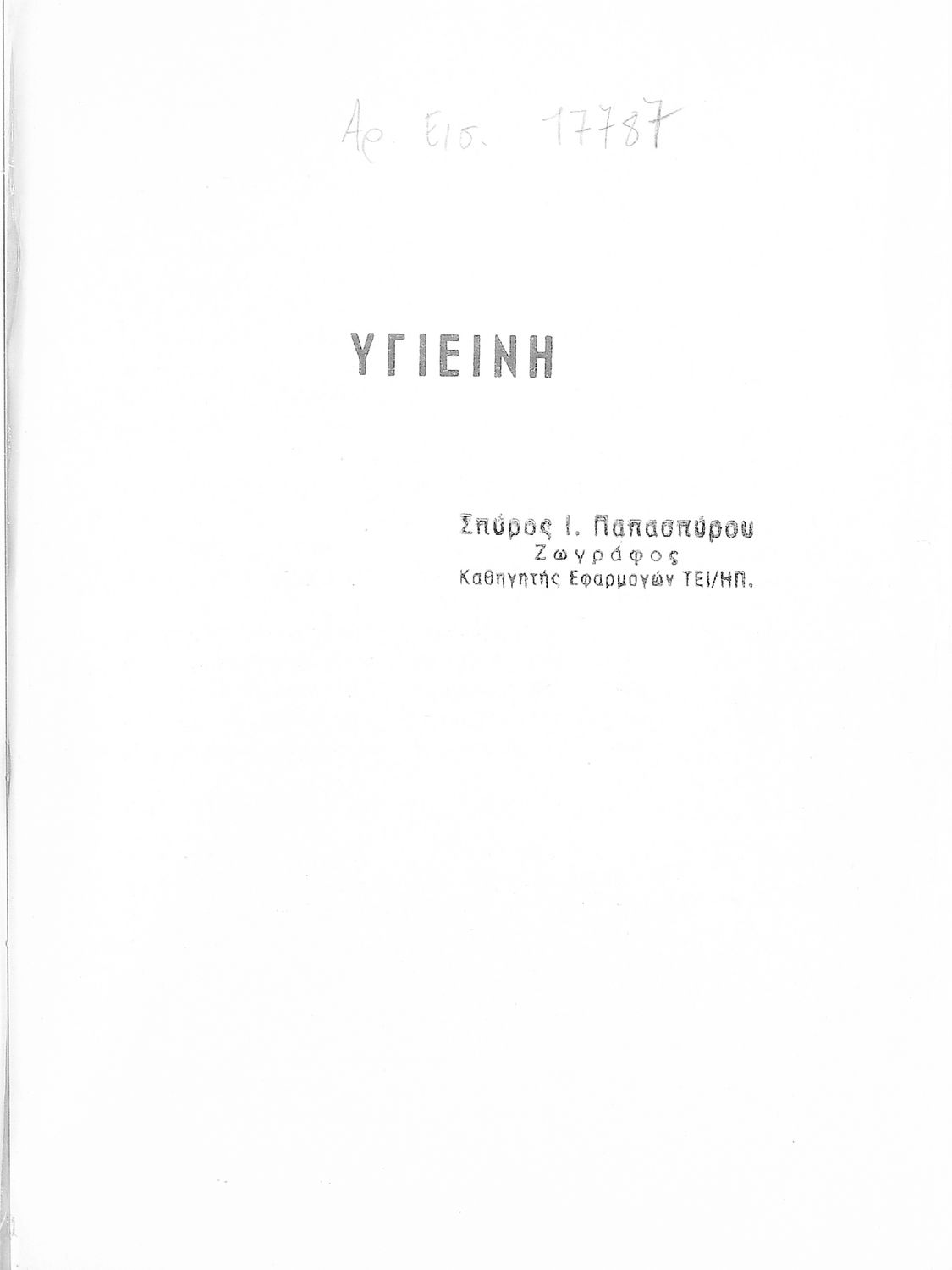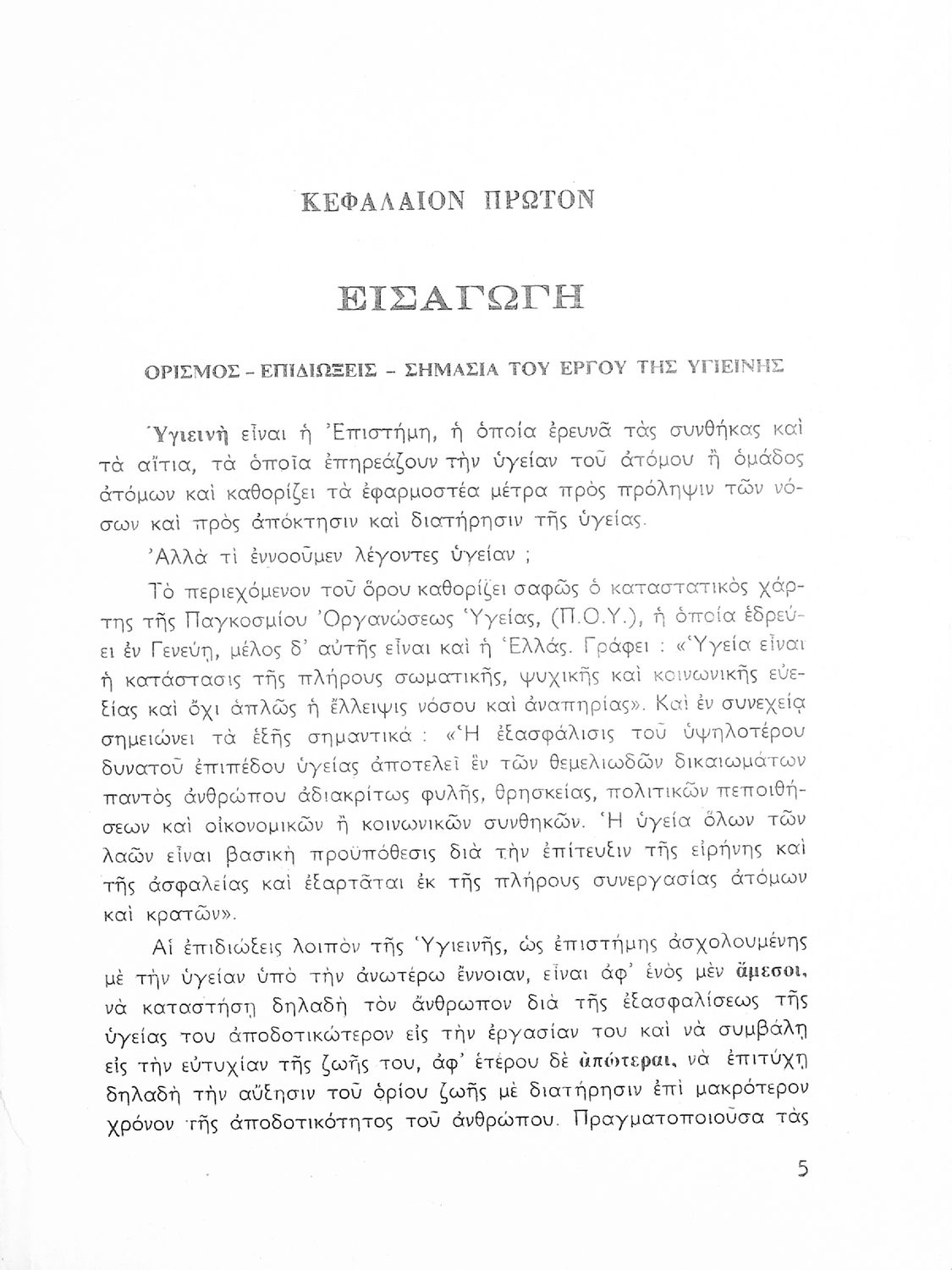 Σχολικό εγχειρίδιο Υγιεινής για την Ε΄ Γυμνασίου που εστιάζει περιβαντολλογική διάσταση της υγιεινής, τα λοιμώδη νοσήματα, και την κοινωνική υγιεινή.