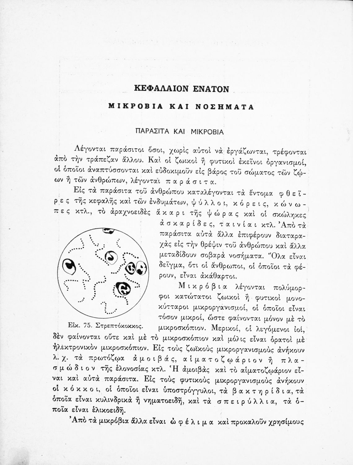 Βαθμίδα εκπαίδευσης: Δευτεροβάθμια Μάθημα: Ανθρωπολογία, Υγιεινή Γλώσσα: Απλή καθαρεύουσα Παρουσίαση περιεχομένου: Σχολικό εγχειρίδιο Ανθρωπολογίας που εστιάζει στην ανατομία και φυσιολογία του ανθρώπινου σώματος καθώς και στα μικρόβια και νοσήματα. |