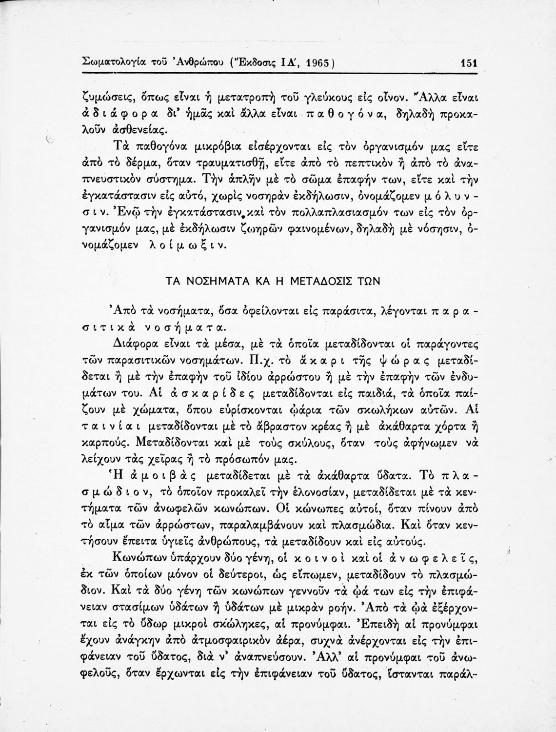 Σχολικό εγχειρίδιο Ανθρωπολογίας που εστιάζει στην ανατομία και φυσιολογία του ανθρώπινου σώματος καθώς και στα μικρόβια και νοσήματα.