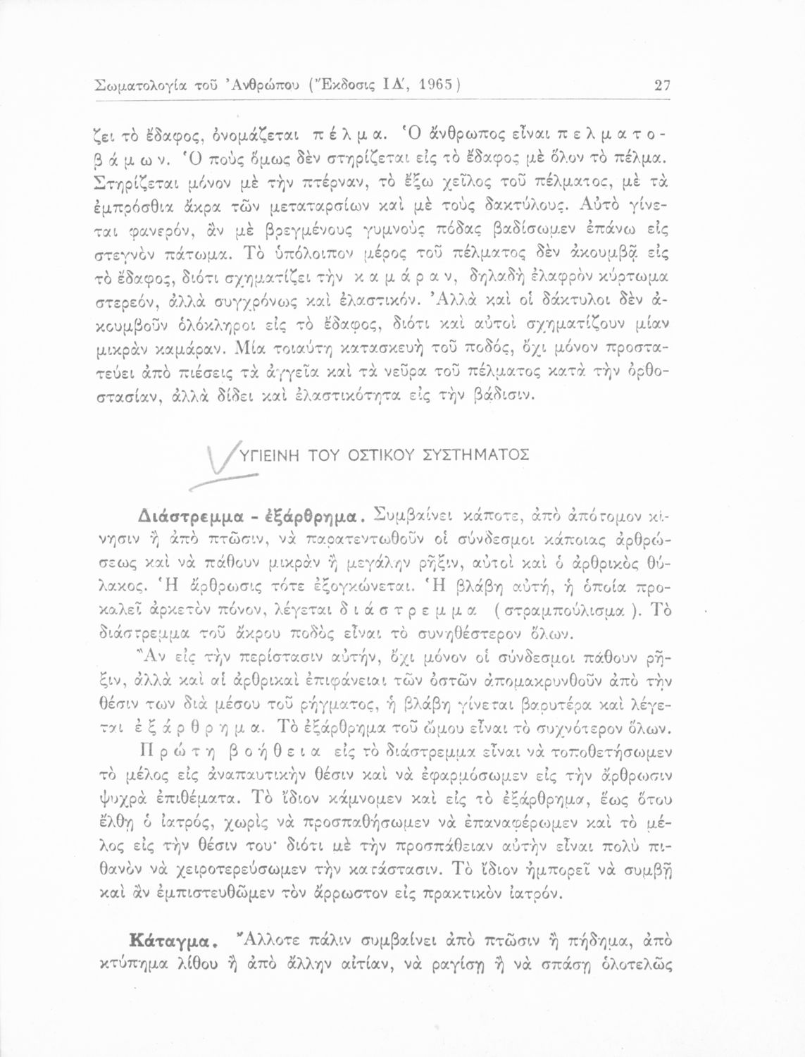 Βαθμίδα εκπαίδευσης: Δευτεροβάθμια Μάθημα: Ανθρωπολογία, Υγιεινή Γλώσσα: Απλή καθαρεύουσα Παρουσίαση περιεχομένου: Σχολικό εγχειρίδιο Ανθρωπολογίας που εστιάζει στην ανατομία και φυσιολογία του ανθρώπινου σώματος καθώς και στα μικρόβια και νοσήματα. |