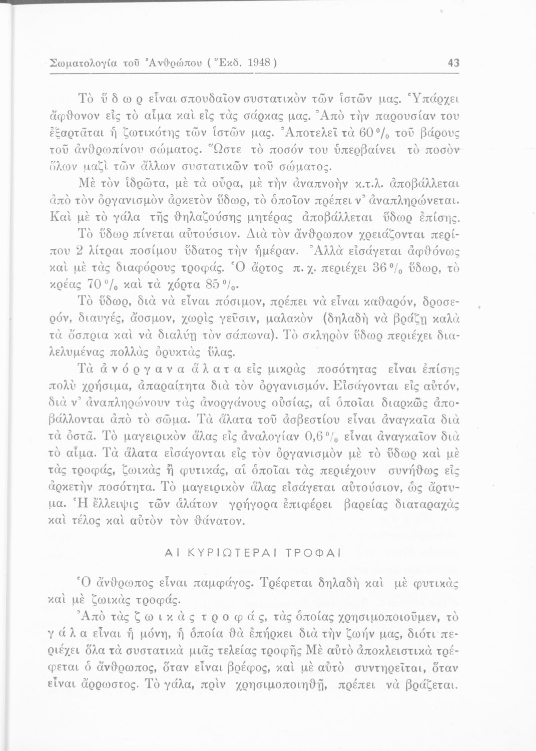 Σωματολογία του ανθρώπου μετά στοιχείων υγιεινής δια την Ε΄ Τάξιν των Εξαταξίων Γυμνασίων