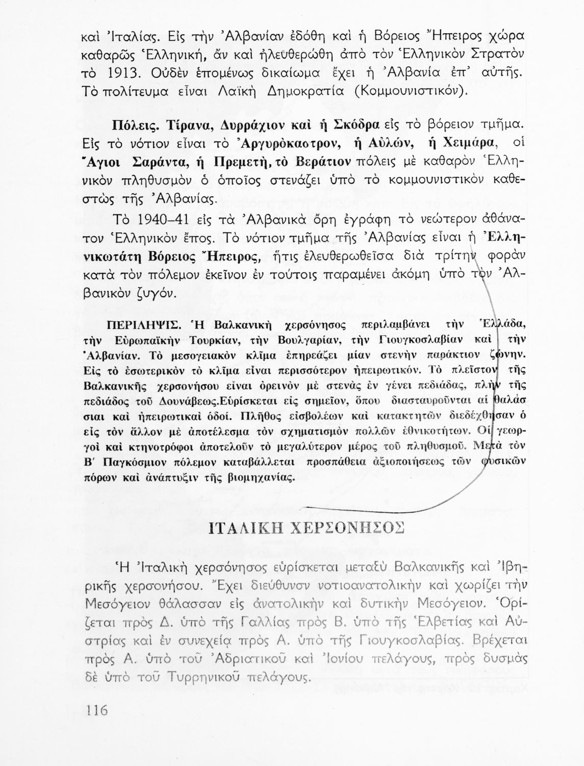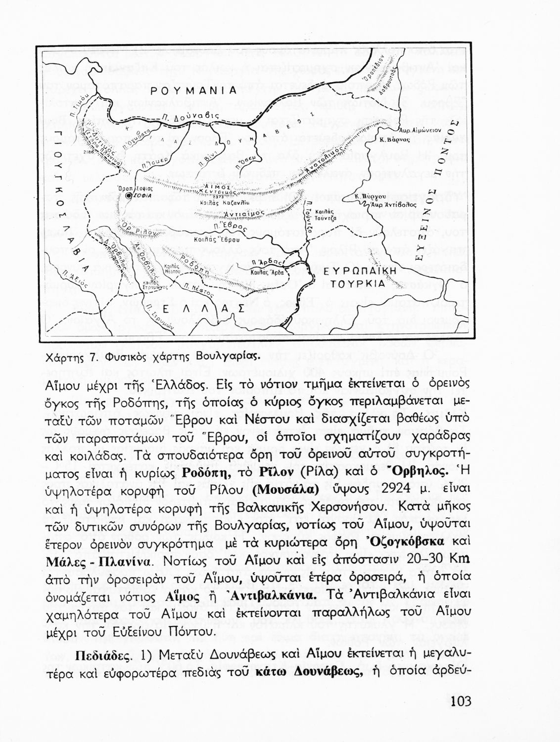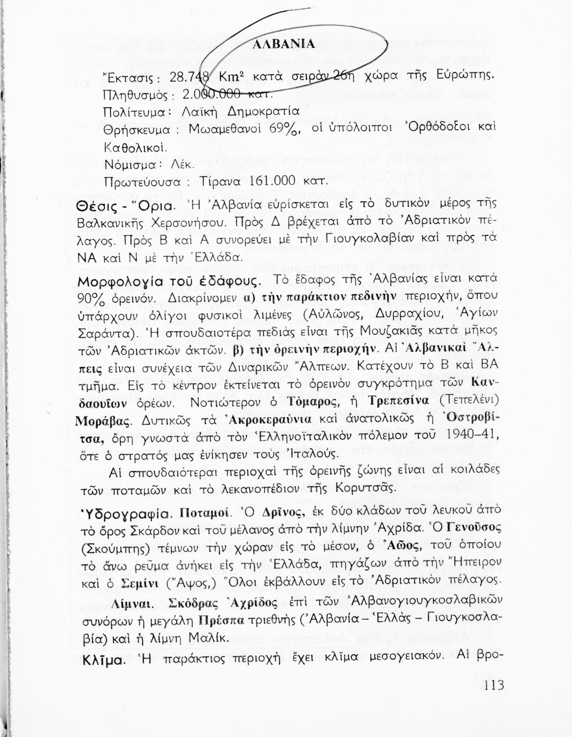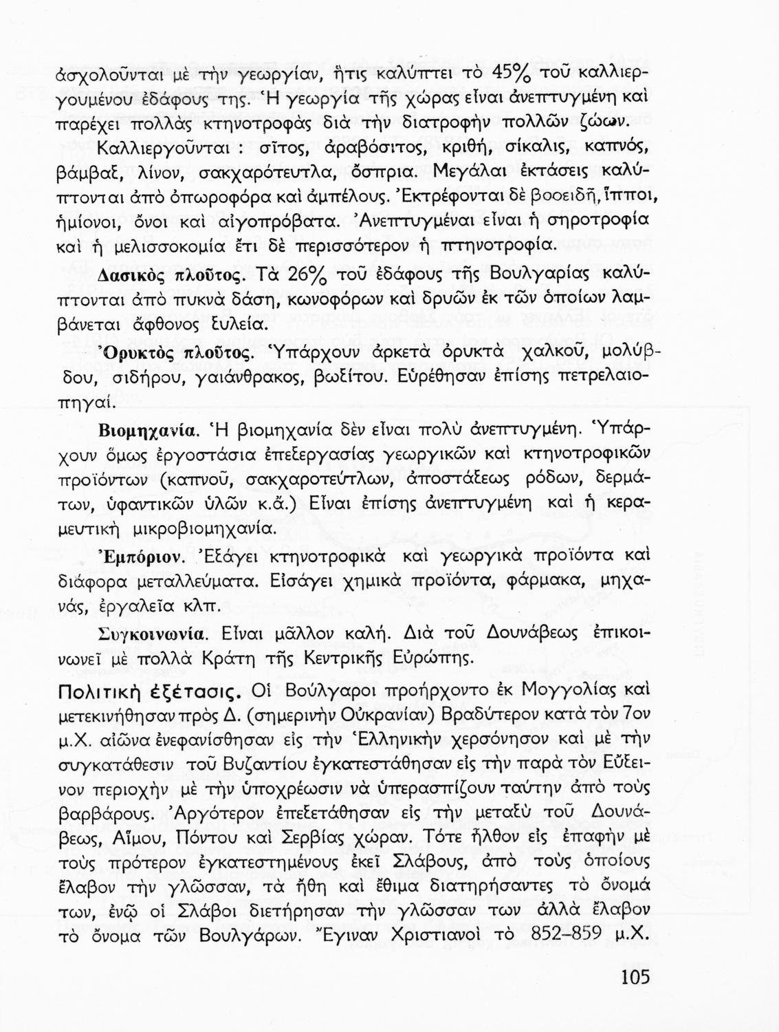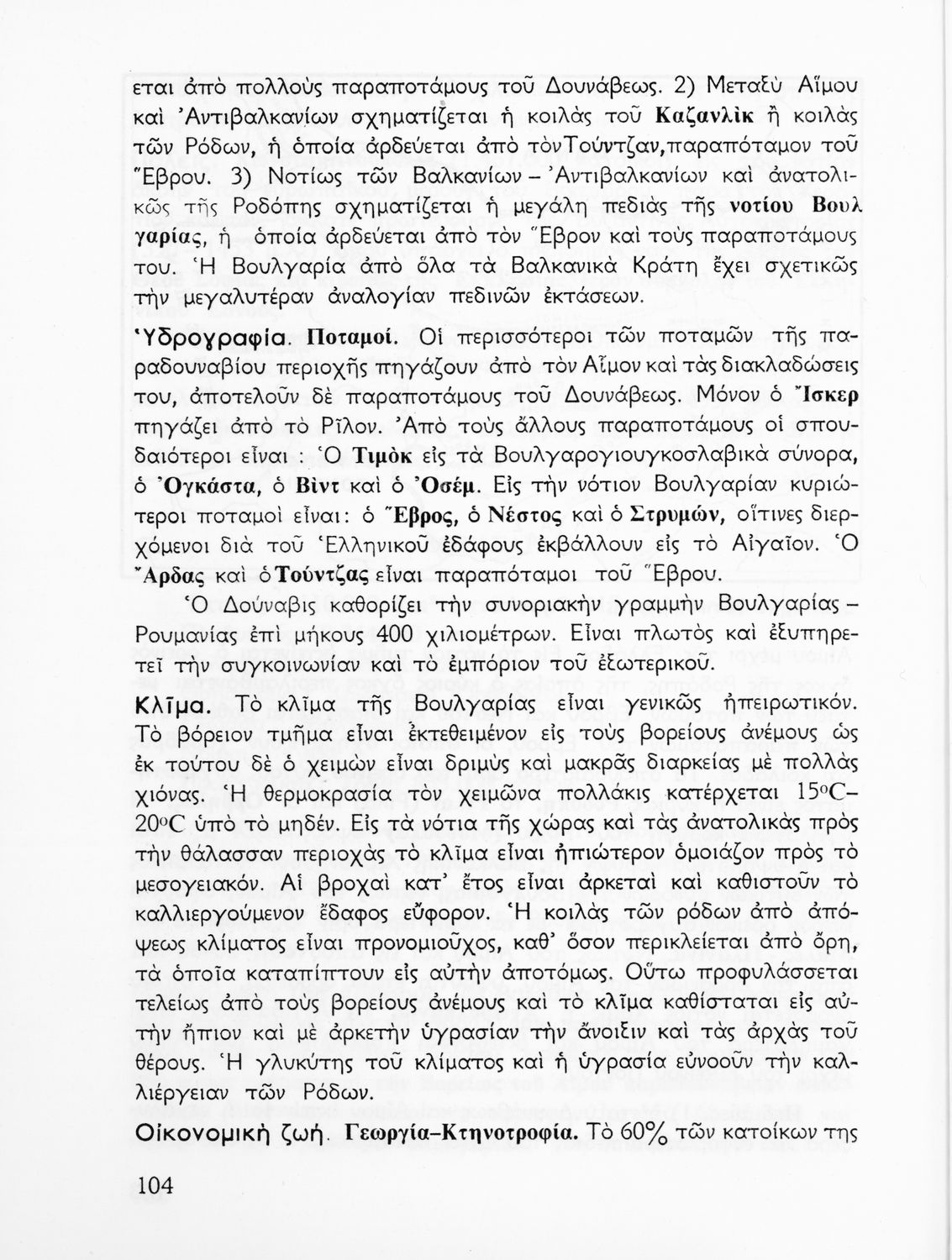 Βαθμίδα εκπαίδευσης: Δευτεροβάθμια Τάξη: Β' Γυμνασίου Μάθημα: Γεωγραφία Γλώσσα: Καθαρεύουσα Παρουσίαση περιεχομένου: Σχολικό εγχειρίδιο Γεωγραφίας Β' Γυμνασίου που περιλαμβάνει εισαγωγή στη φυσική και μαθηματική γεωγραφία και παρουσιάζει τις χώρες της Ευρώπης από γεωμορφολογική, πολιτική, πολιτισμική και οικονομική άποψη. Περιέχει και αναφορά στις οικονομικές σχέσεις της Ελλάδας με τα ευρωπαϊκά κράτη. Φέρει το σύμβολο της δικτατορίας. |