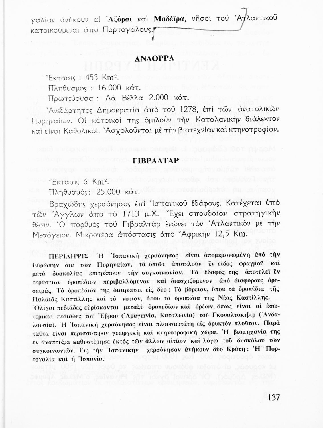 Παρουσίαση περιεχομένου: Σχολικό εγχειρίδιο Γεωγραφίας Β' Γυμνασίου που περιλαμβάνει εισαγωγή στη φυσική και μαθηματική γεωγραφία και παρουσιάζει τις χώρες της Ευρώπης από γεωμορφολογική, πολιτική, πολιτισμική και οικονομική άποψη. Περιέχει και αναφορά στις οικονομικές σχέσεις της Ελλάδας με τα ευρωπαϊκά κράτη. Φέρει το σύμβολο της δικτατορίας.