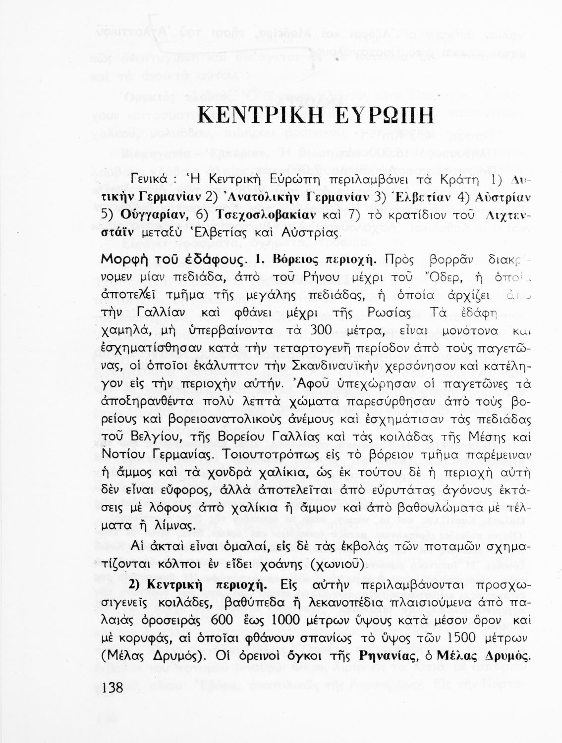 Σχολικό εγχειρίδιο Γεωγραφίας Β' Γυμνασίου που περιλαμβάνει εισαγωγή στη φυσική και μαθηματική γεωγραφία και παρουσιάζει τις χώρες της Ευρώπης από γεωμορφολογική, πολιτική, πολιτισμική και οικονομική άποψη. Περιέχει και αναφορά στις οικονομικές σχέσεις της Ελλάδας με τα ευρωπαϊκά κράτη. Φέρει το σύμβολο της δικτατορίας.