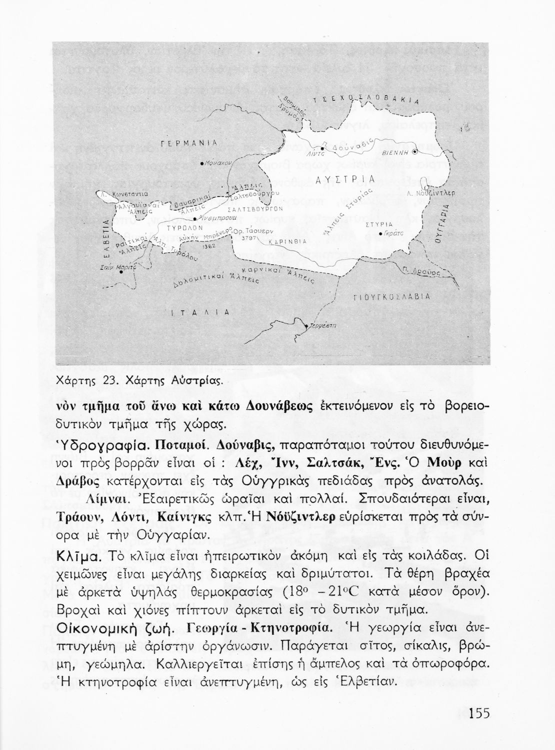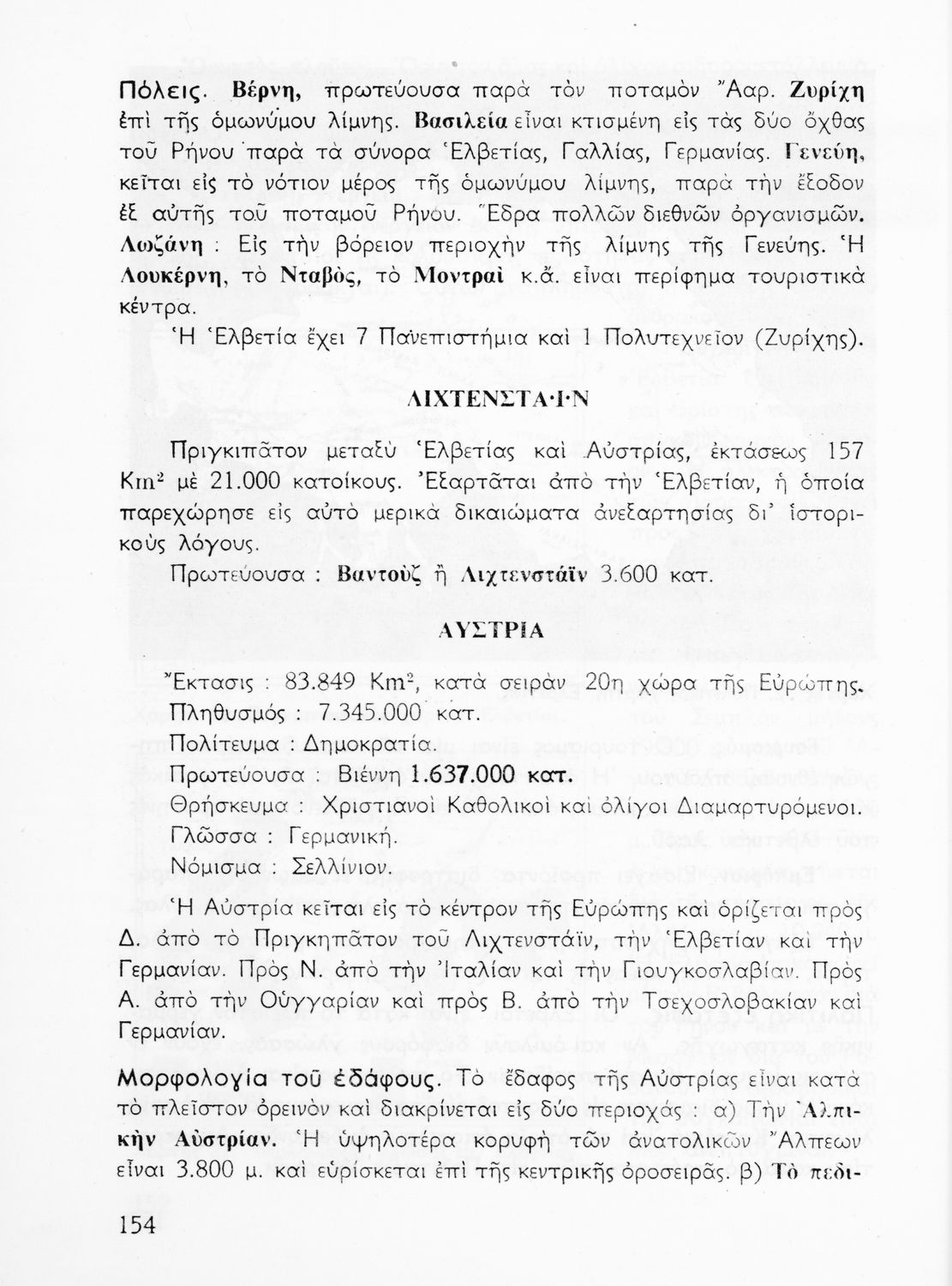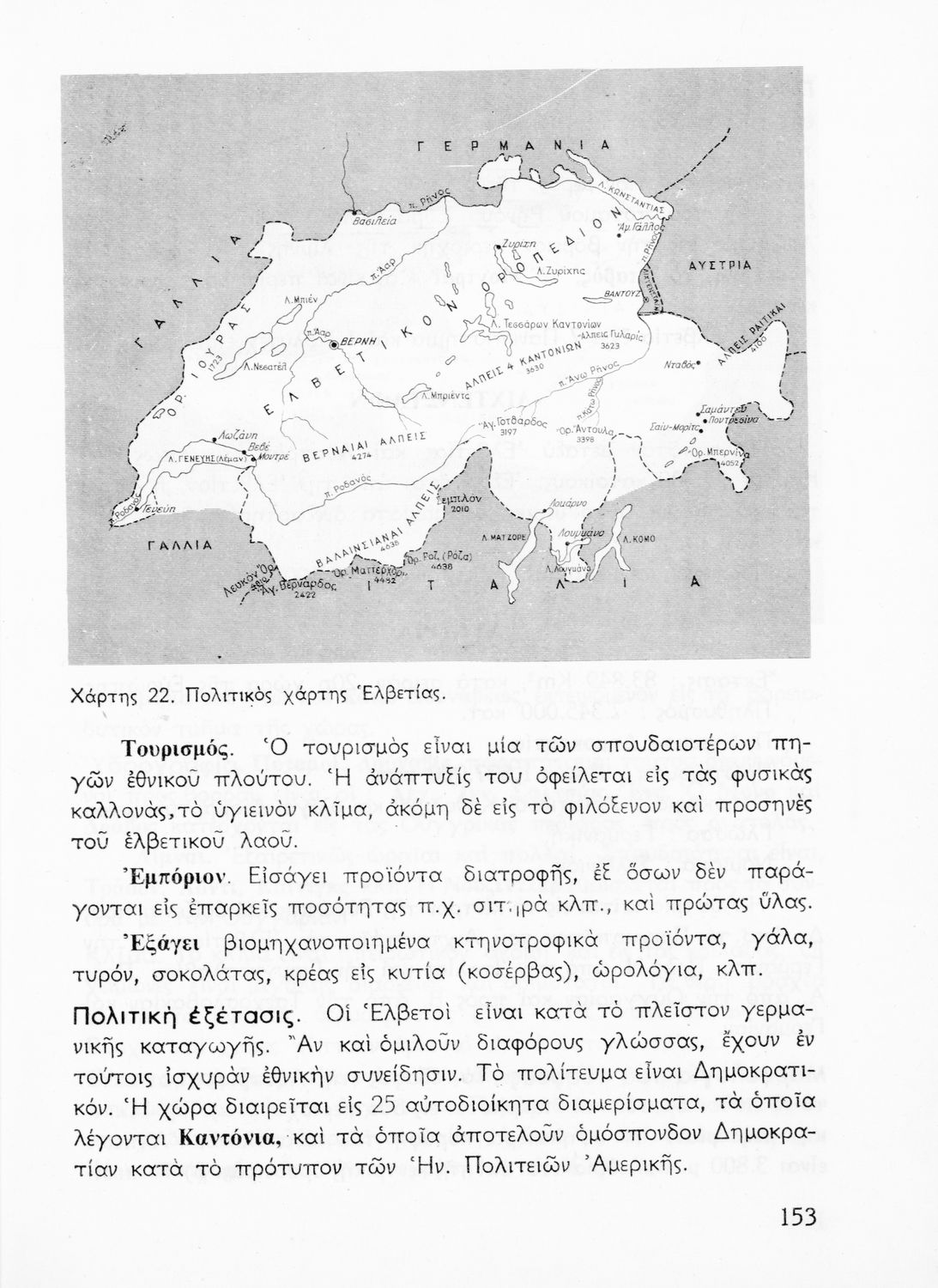 Σχολικό εγχειρίδιο Γεωγραφίας Β' Γυμνασίου που περιλαμβάνει εισαγωγή στη φυσική και μαθηματική γεωγραφία και παρουσιάζει τις χώρες της Ευρώπης από γεωμορφολογική, πολιτική, πολιτισμική και οικονομική άποψη. Περιέχει και αναφορά στις οικονομικές σχέσεις της Ελλάδας με τα ευρωπαϊκά κράτη. Φέρει το σύμβολο της δικτατορίας.