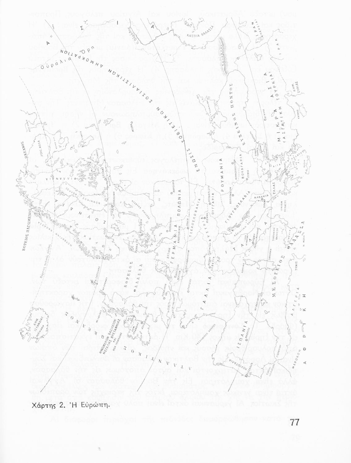 Σχολικό εγχειρίδιο Γεωγραφίας Β' Γυμνασίου που περιλαμβάνει εισαγωγή στη φυσική και μαθηματική γεωγραφία και παρουσιάζει τις χώρες της Ευρώπης από γεωμορφολογική, πολιτική, πολιτισμική και οικονομική άποψη. Περιέχει και αναφορά στις οικονομικές σχέσεις της Ελλάδας με τα ευρωπαϊκά κράτη. Φέρει το σύμβολο της δικτατορίας.
