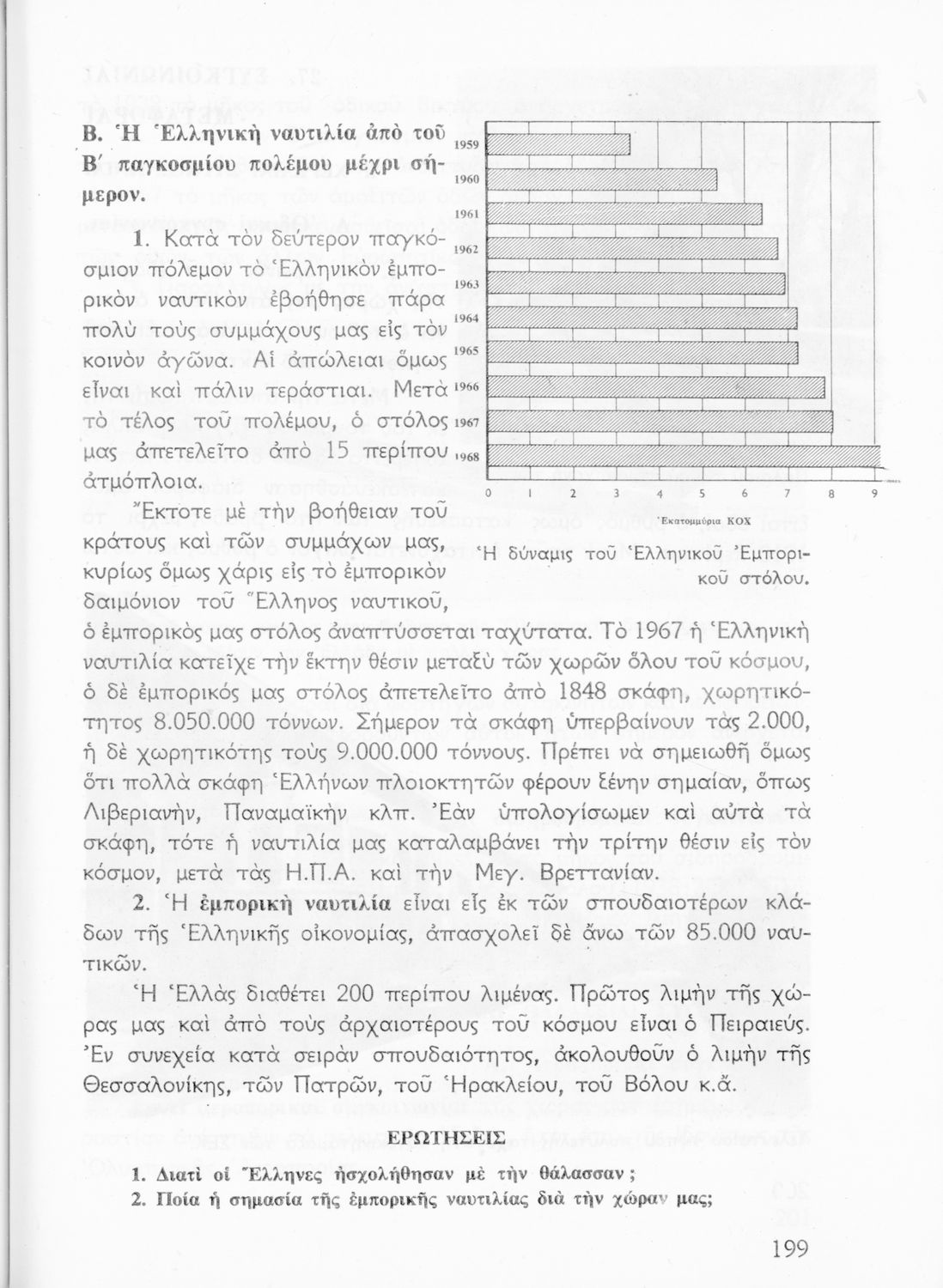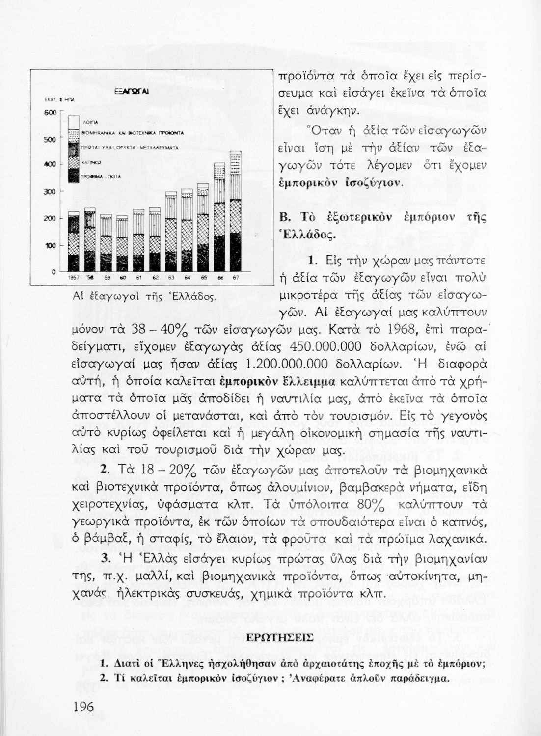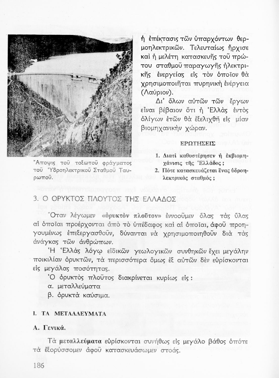 Σχολικό εγχειρίδιο Γεωγραφίας Α΄ Γυμνασίου που εξετάζει την Ελλάδα από γεωφυσική, πολιτική, οικονομική και πολιτισμική άποψη. Φέρει το σύμβολο της δικτατορίας.