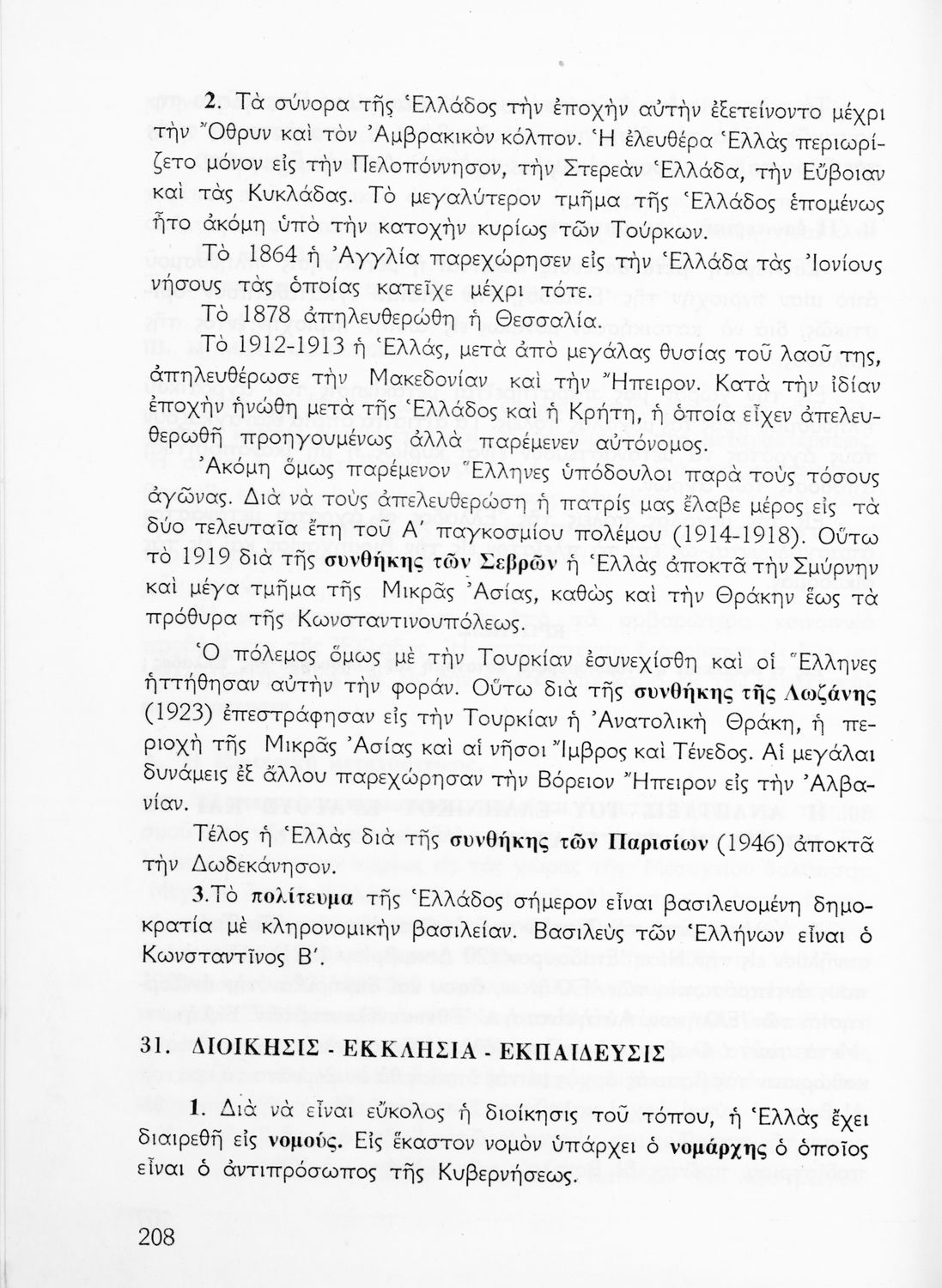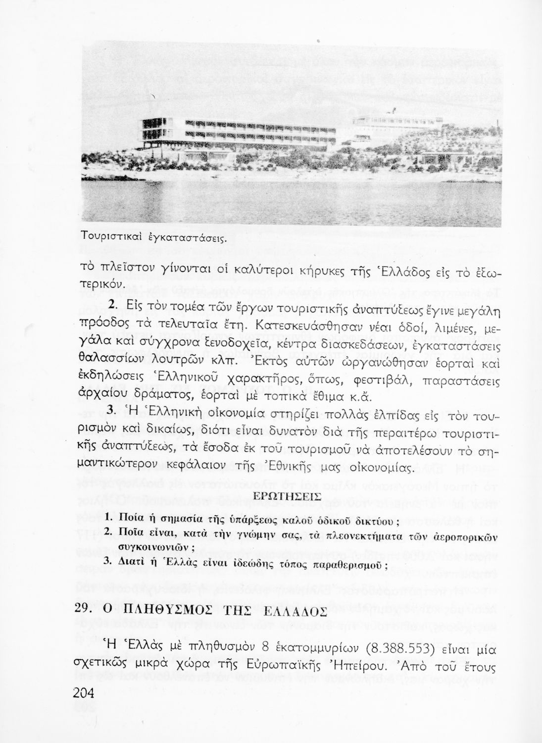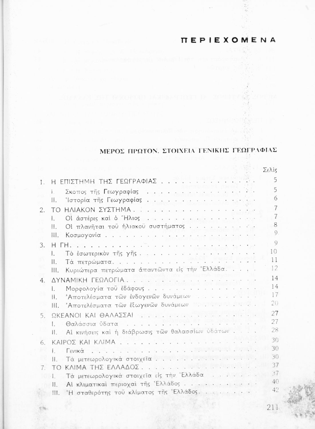 Σχολικό εγχειρίδιο Γεωγραφίας Α΄ Γυμνασίου που εξετάζει την Ελλάδα από γεωφυσική, πολιτική, οικονομική και πολιτισμική άποψη. Φέρει το σύμβολο της δικτατορίας.