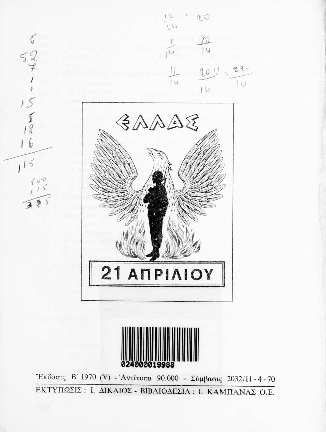 Εκδότης: Οργανισμός Εκδόσεως Διδακτικών Βιβλίων Έτος έκδοσης: 1970 Τόπος έκδοσης: Αθήνα Έκδοση: 2η Υπουργική απόφαση / Σύμβαση: 2032/11-4-1970 Έτος έγκρισης: 1970 |