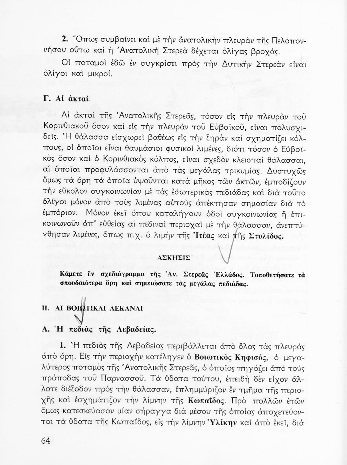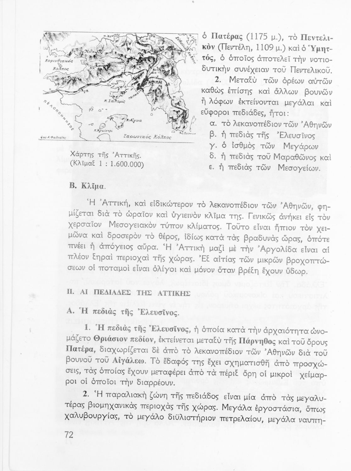 Σχολικό εγχειρίδιο Γεωγραφίας Α' Γυμνασίου που εξετάζει την Ελλάδα ανά διαμέρισμα και νομό από γεωφυσική, οικονομική και πολιτική άποψη.