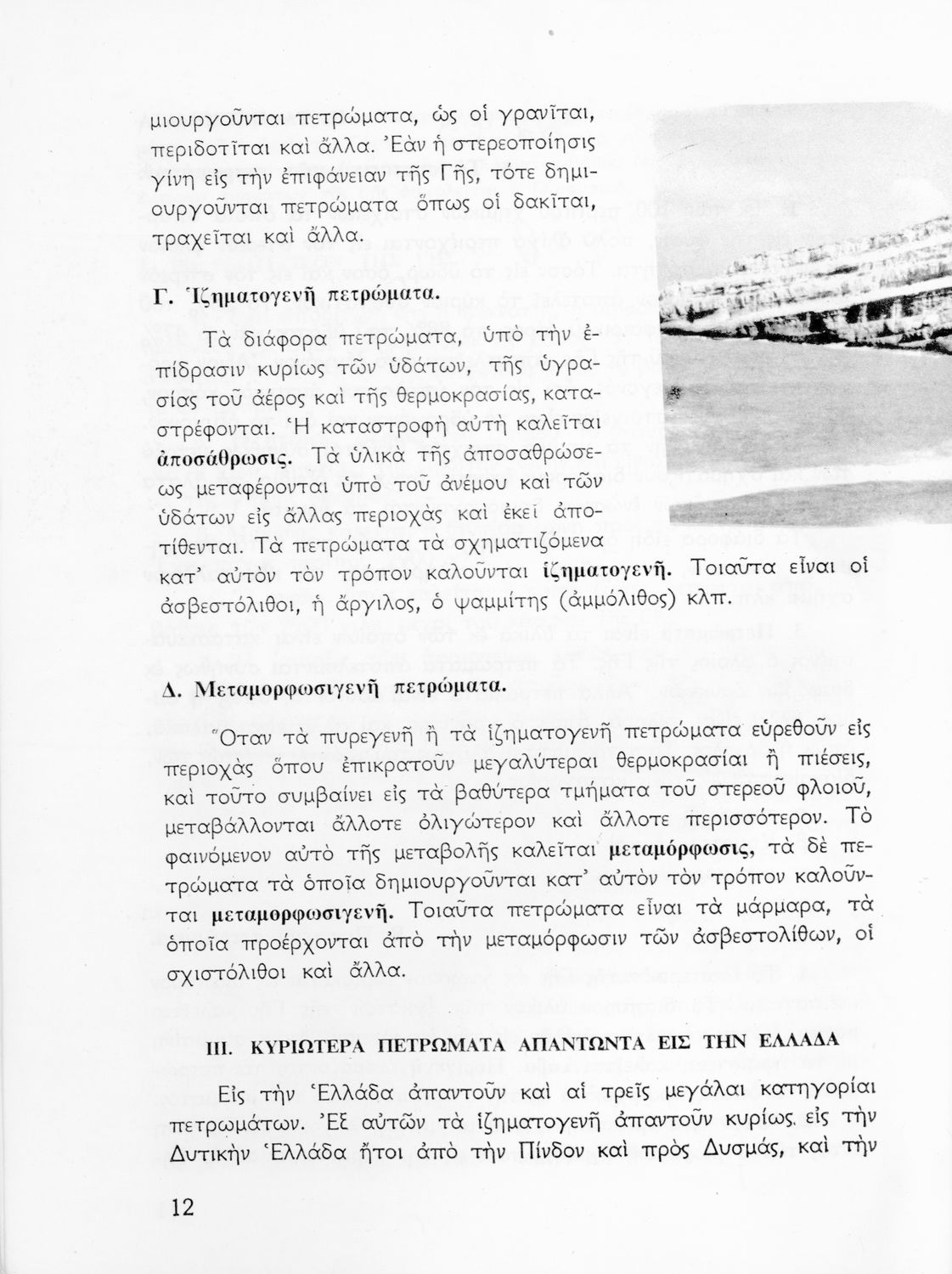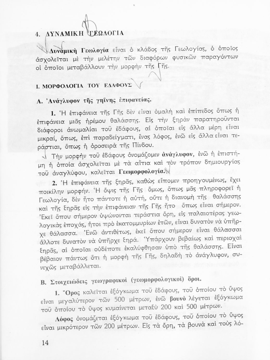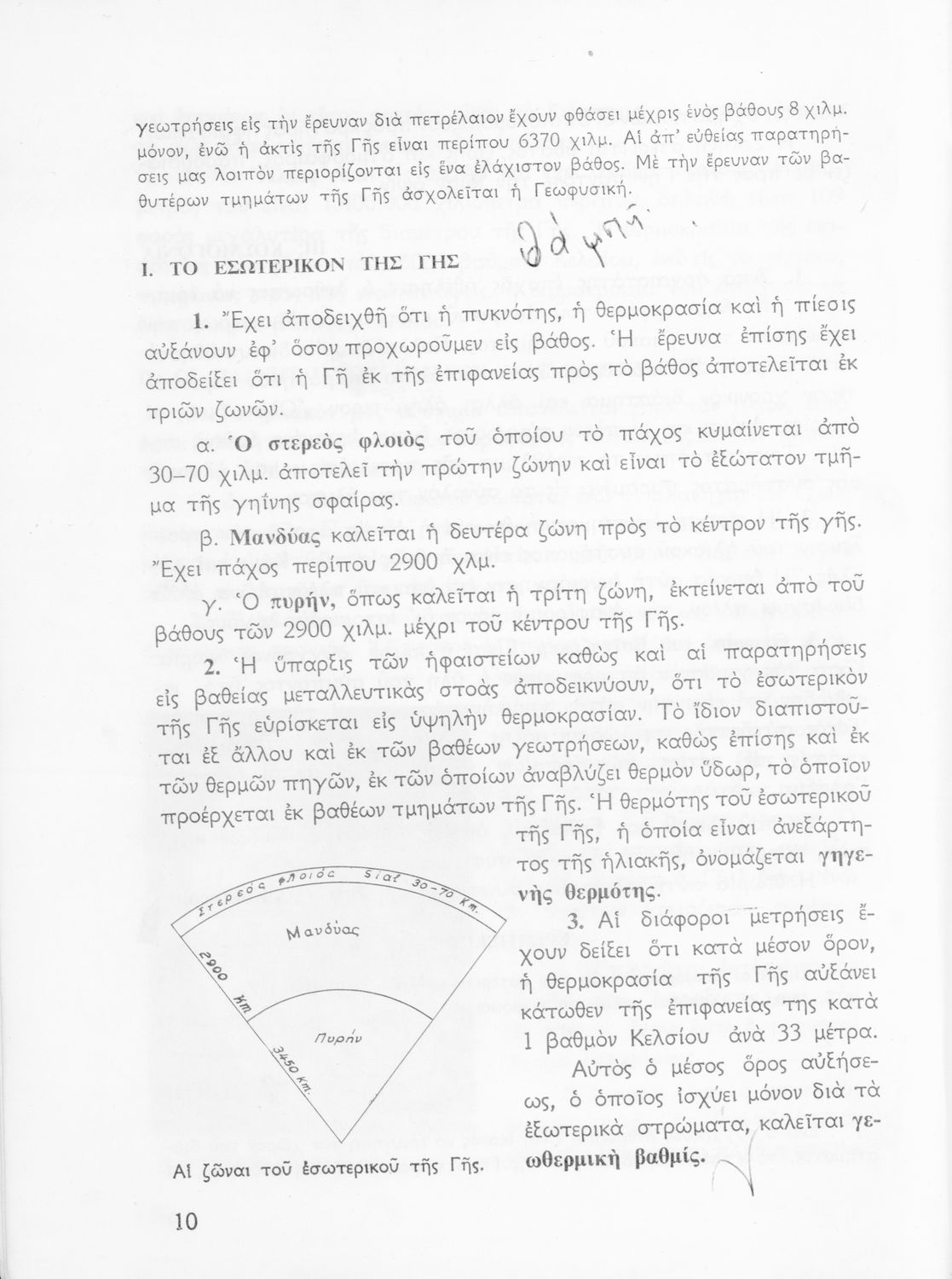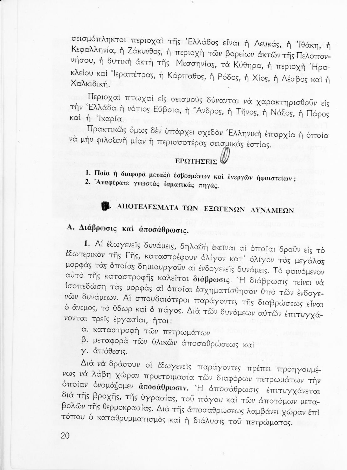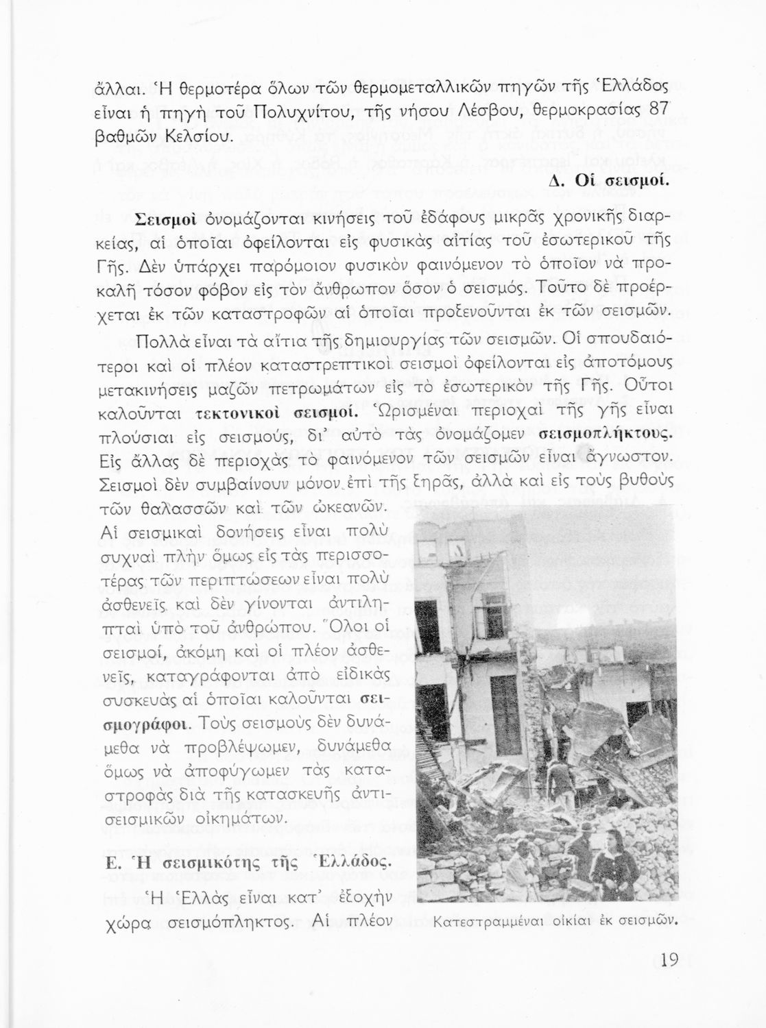 Σχολικό εγχειρίδιο Γεωγραφίας Α΄ Γυμνασίου που εξετάζει την Ελλάδα από γεωφυσική, πολιτική, οικονομική και πολιτισμική άποψη. Φέρει το σύμβολο της δικτατορίας.