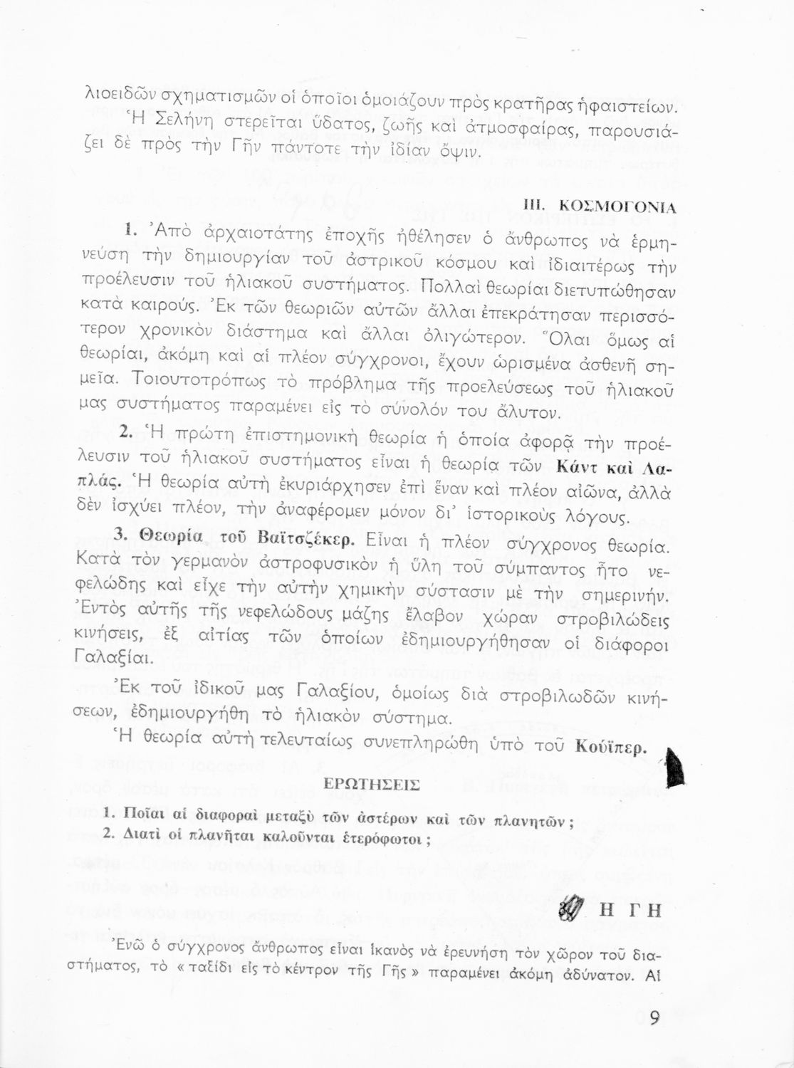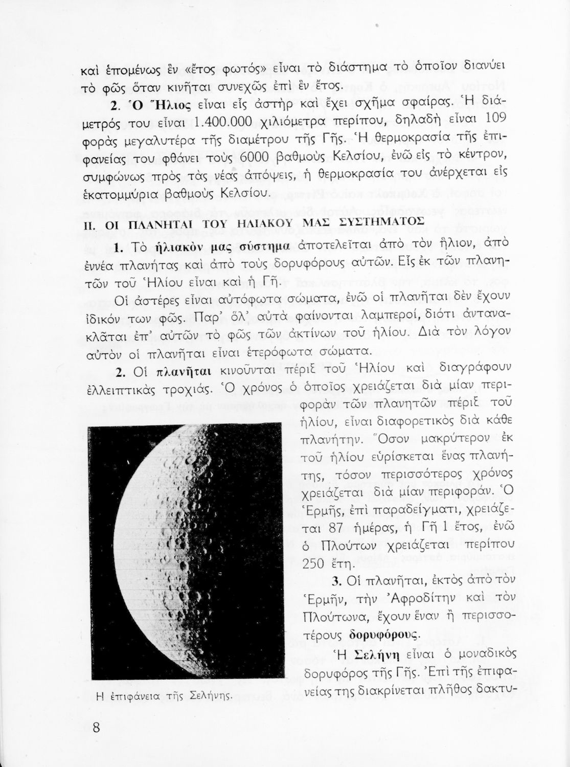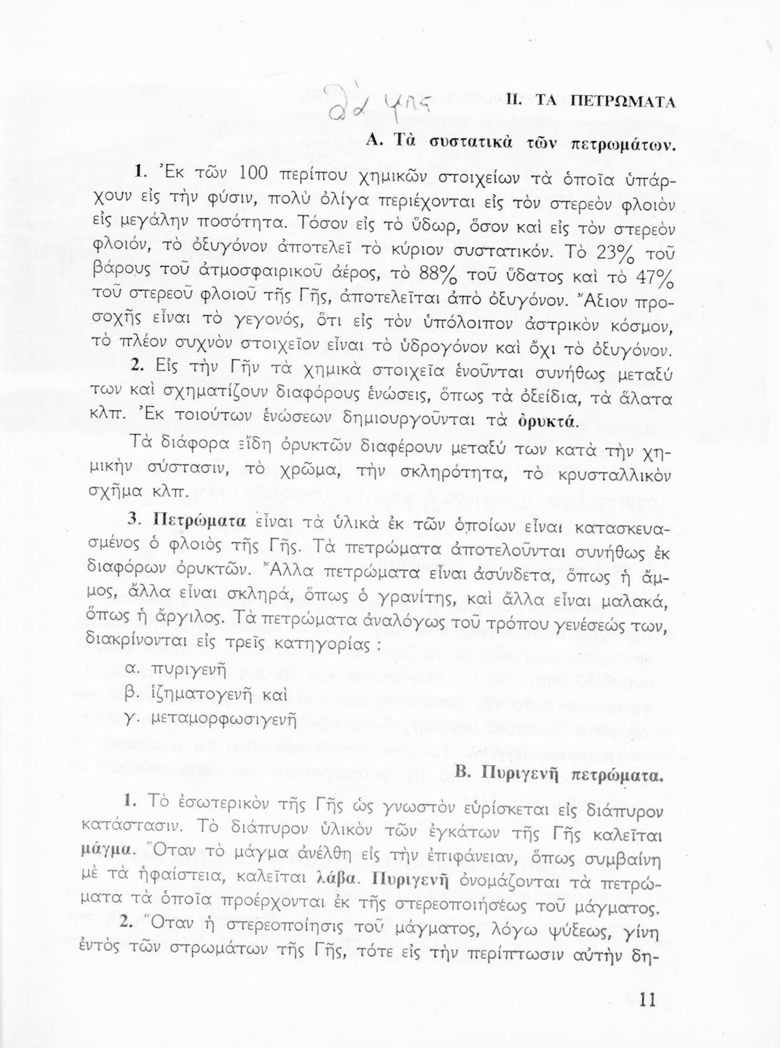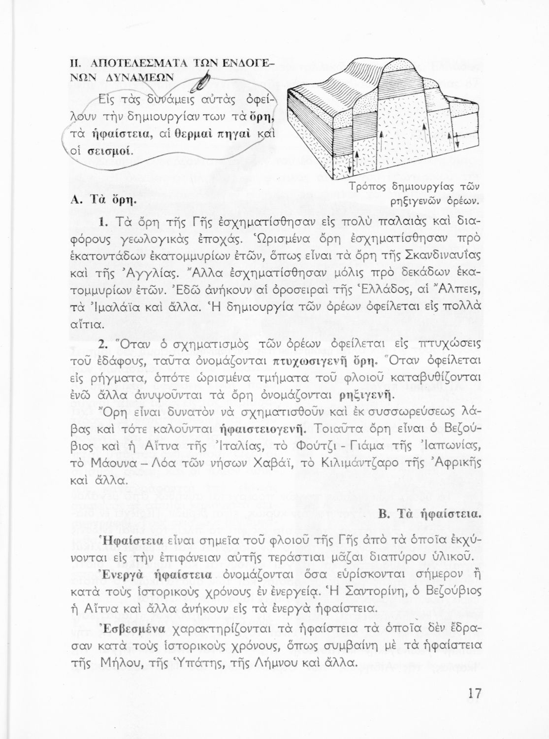 Σχολικό εγχειρίδιο Γεωγραφίας Α΄ Γυμνασίου που εξετάζει την Ελλάδα από γεωφυσική, πολιτική, οικονομική και πολιτισμική άποψη. Φέρει το σύμβολο της δικτατορίας.