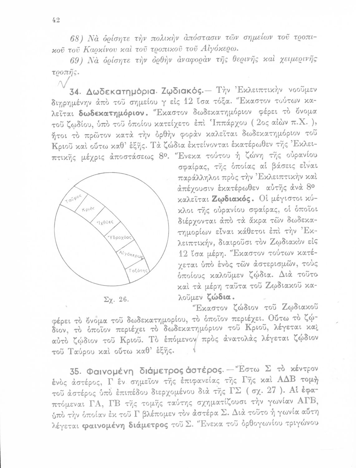 Σχολικό εγχειρίδιο Κοσμογραφίας που εστιάζει στην κίνηση των πλανητών και στον τρόπο υπολογισμού της τροχιάς τους. Φέρει το σύμβολο της δικτατορίας.