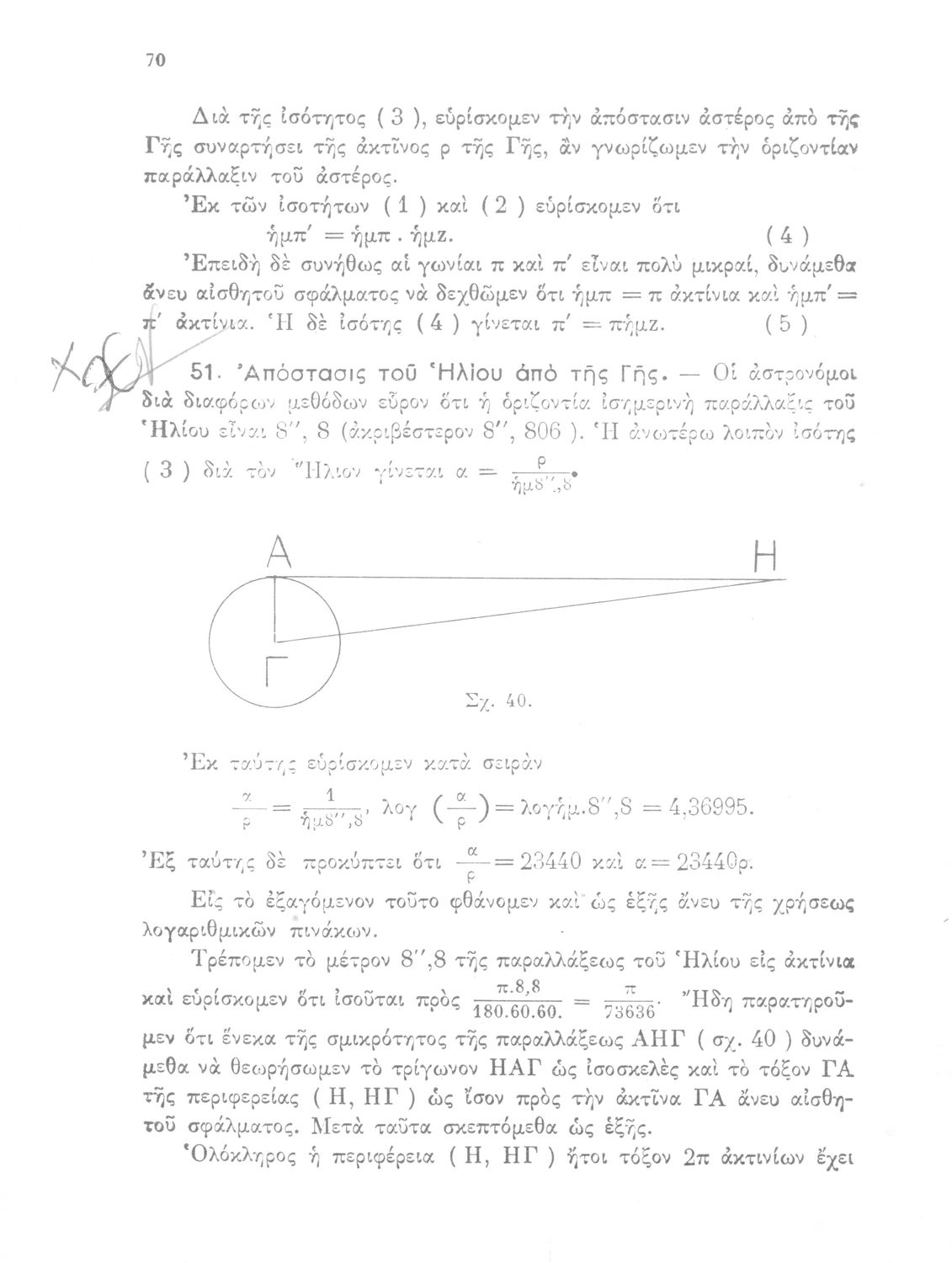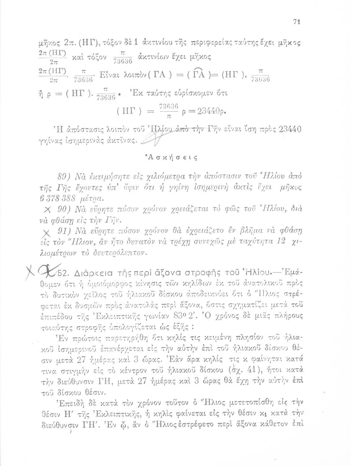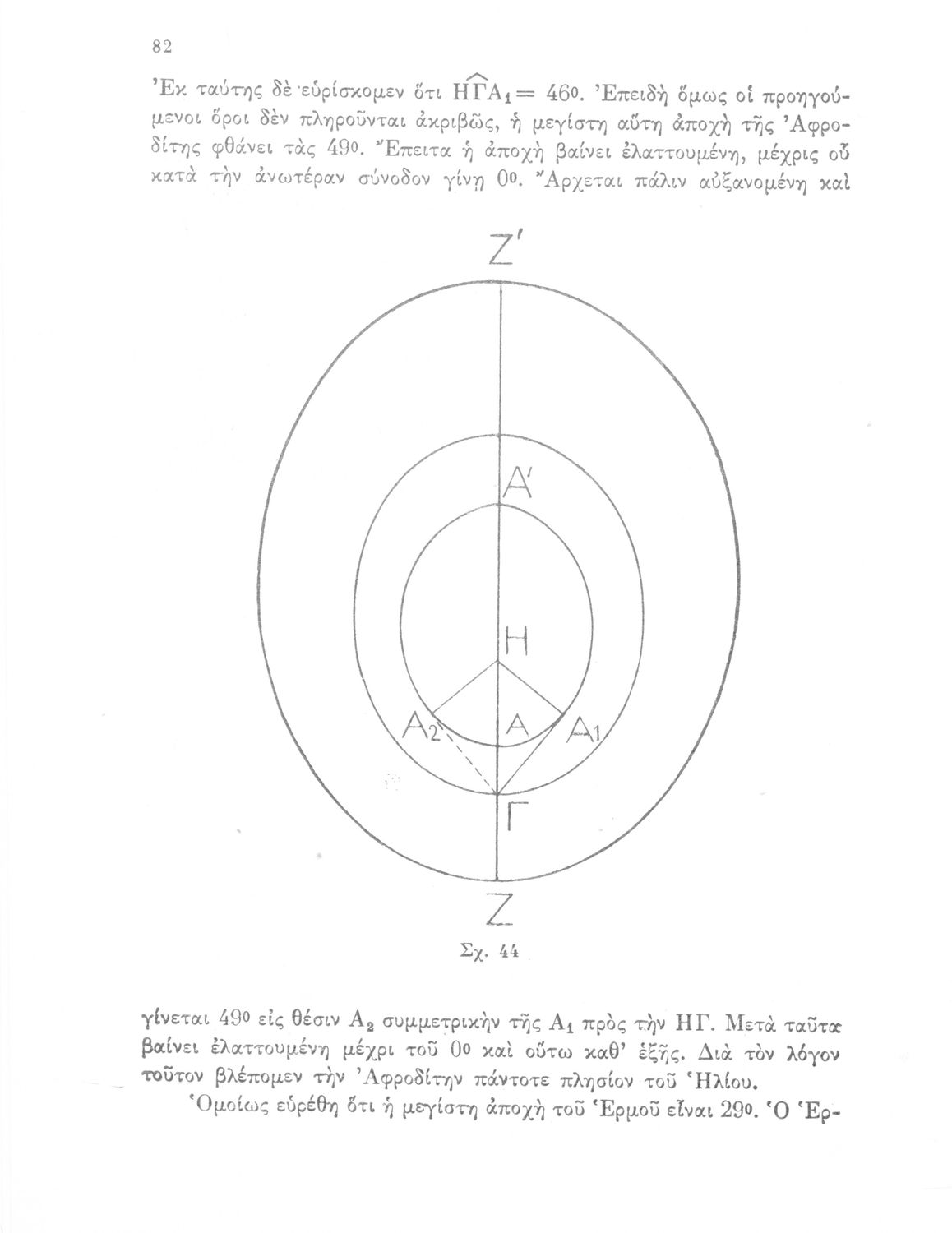 Σχολικό εγχειρίδιο Κοσμογραφίας που εστιάζει στην κίνηση των πλανητών και στον τρόπο υπολογισμού της τροχιάς τους. Φέρει το σύμβολο της δικτατορίας.