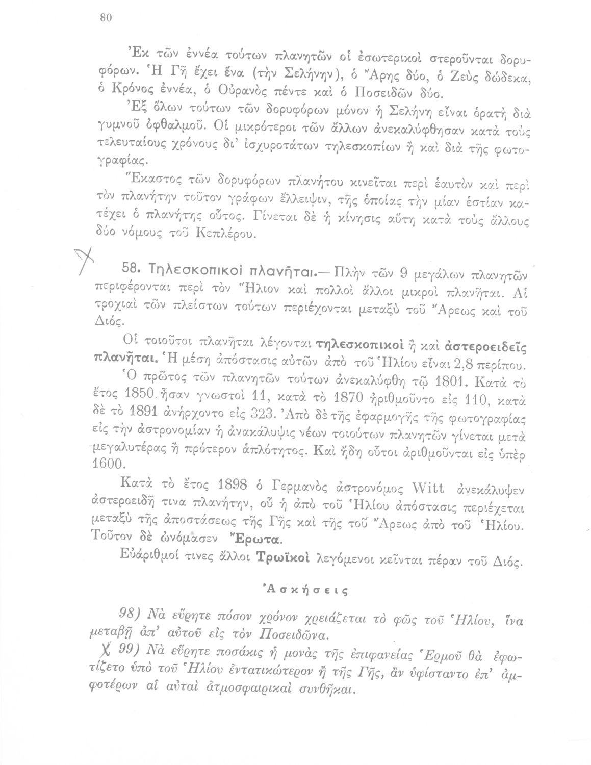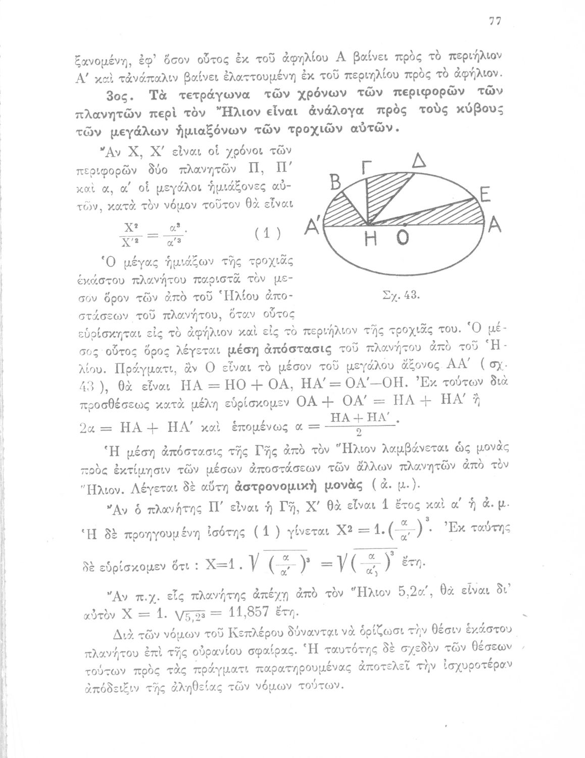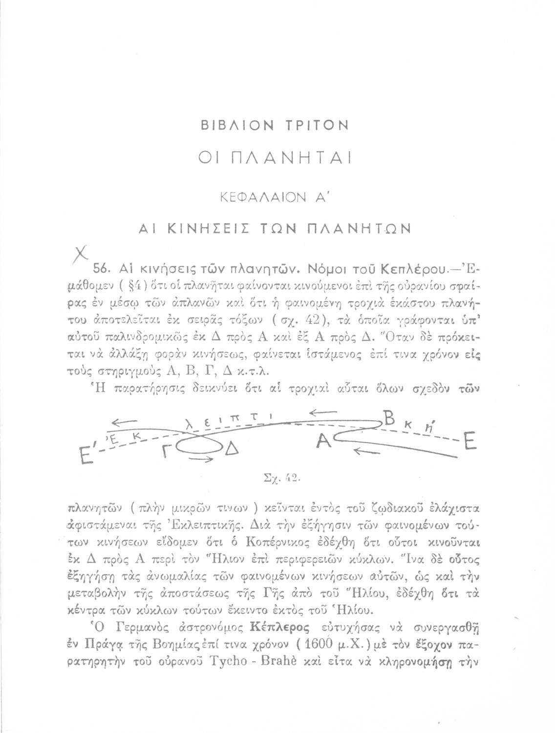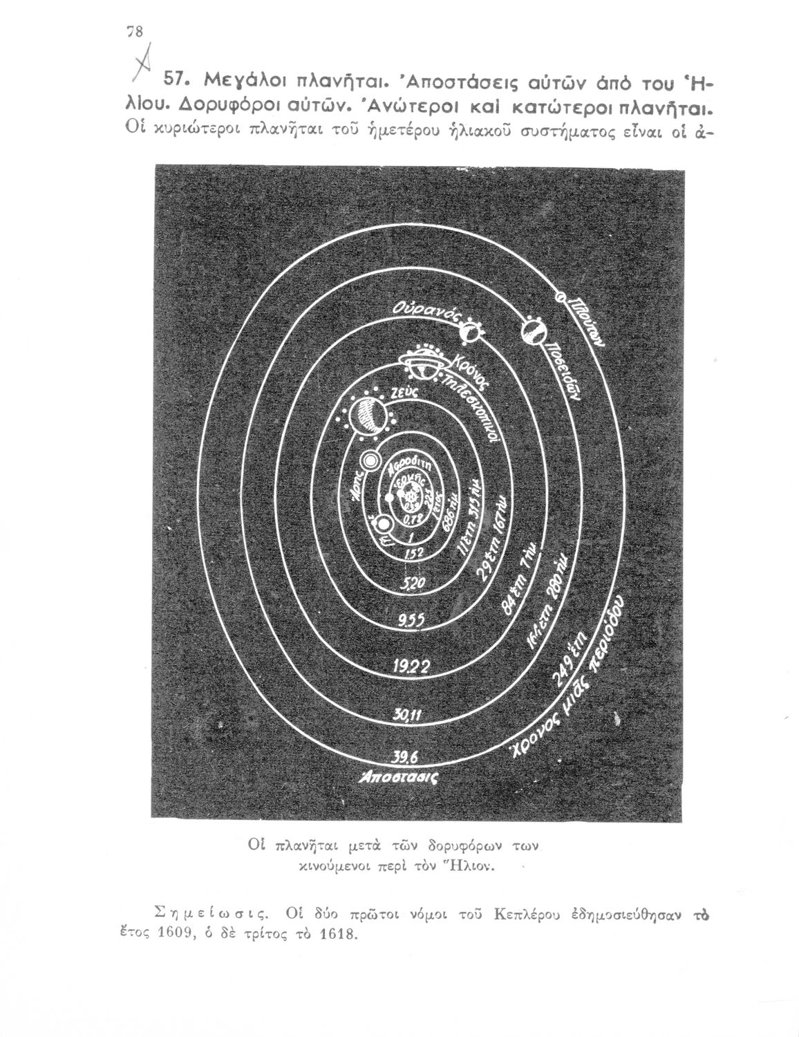 Σχολικό εγχειρίδιο Κοσμογραφίας που εστιάζει στην κίνηση των πλανητών και στον τρόπο υπολογισμού της τροχιάς τους.