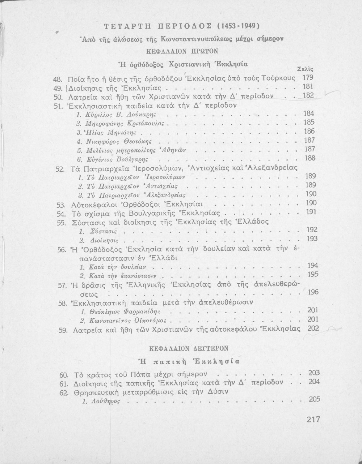 Σχολικό εγχειρίδιο Θρησκευτικών για την Δ' Γυμνασίου παλαιού τύπου που περιέχει την ιστορία της ορθόδοξης Εκκλησίας από την ίδρυσή της μέχρι την δημιουργία της Εκκλησίας της Ελλάδας.