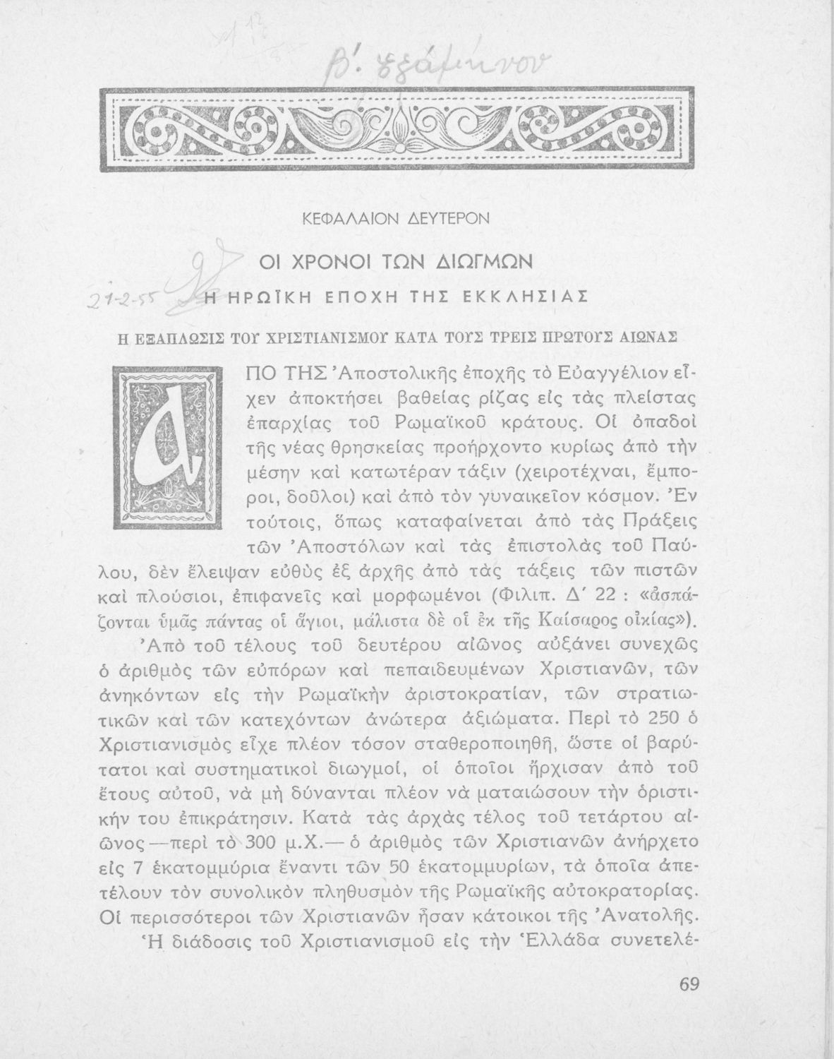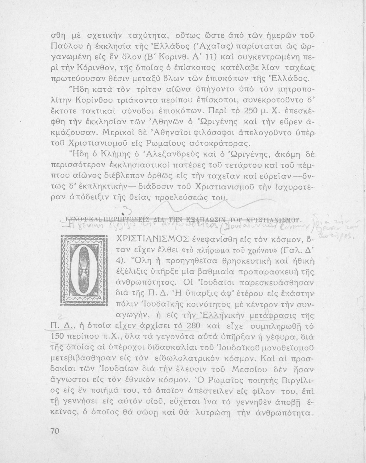 Σχολικό εγχειρίδιο Θρησκευτικών για την Δ' Γυμνασίου παλαιού τύπου που περιέχει την ιστορία της ορθόδοξης Εκκλησίας από την ίδρυσή της μέχρι την δημιουργία της Εκκλησίας της Ελλάδας.