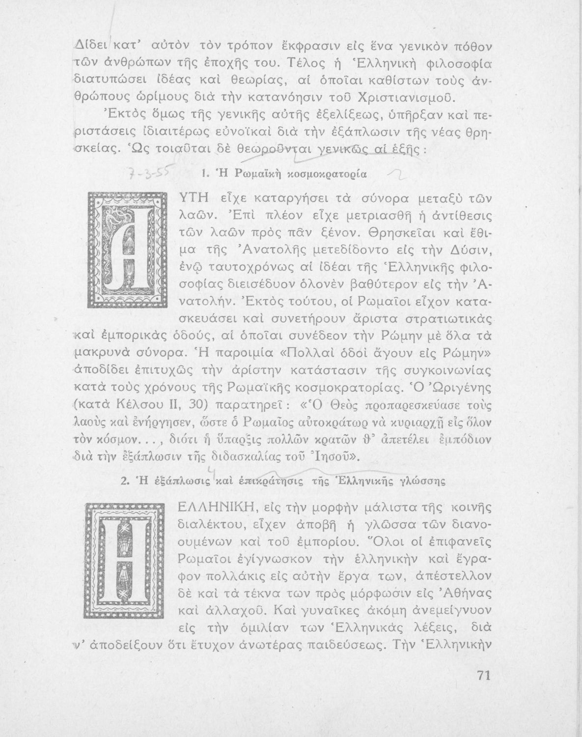 Σχολικό εγχειρίδιο Νέων Ελληνικών Δ΄ Γυμνασίου και Β΄ Αστικού Σχολείου που περιέχει πεζά και ποιήματα Ελλήνων συγγραφέων εμπνευσμένα από τη θρησκευτική και κοινωνική ζωή, την ελληνική μυθολογία, την αρχαία και