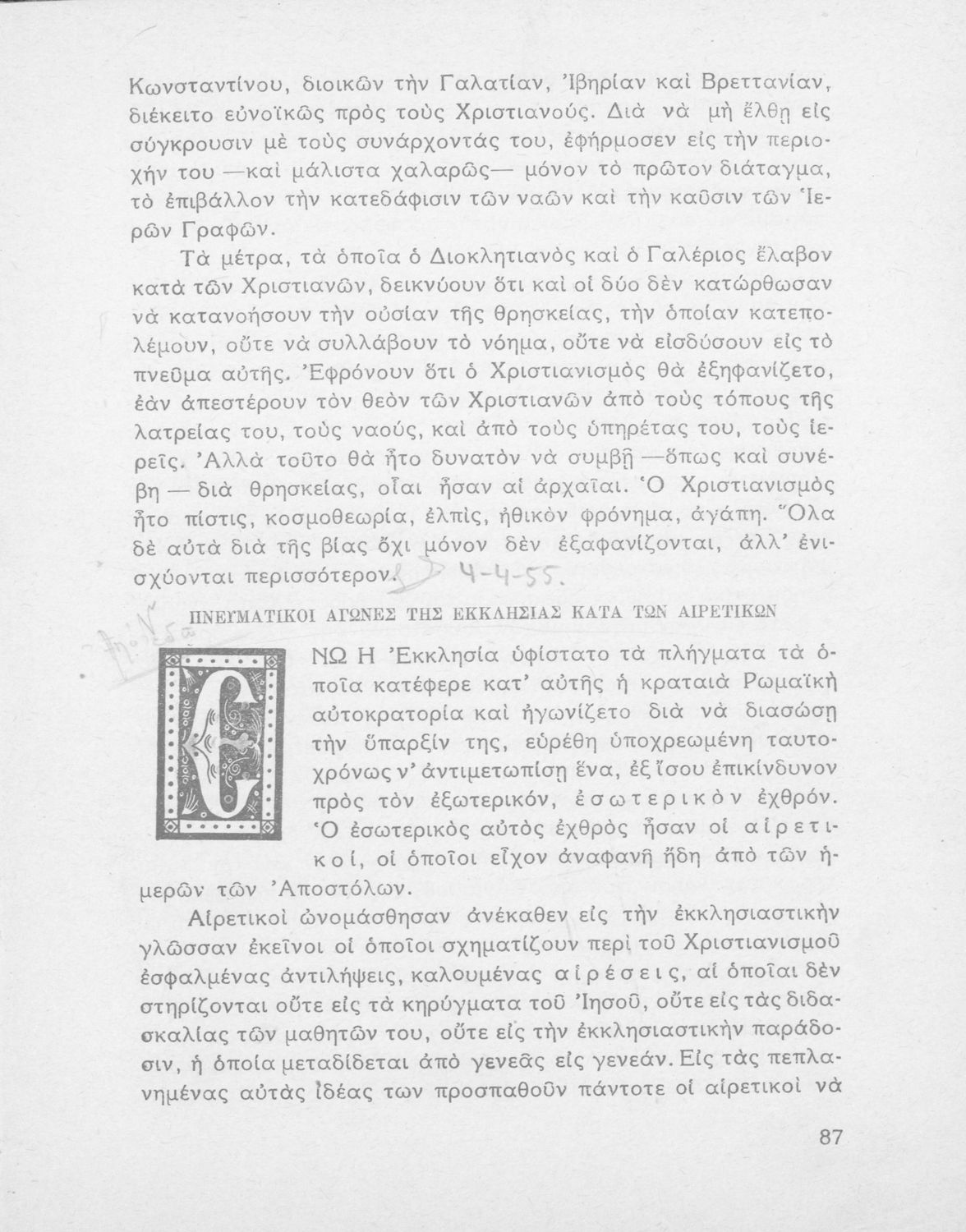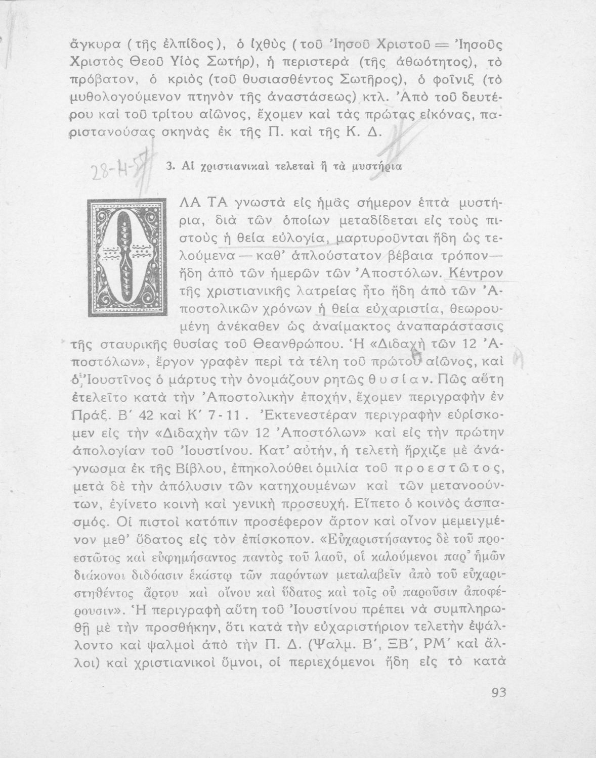 Σχολικό εγχειρίδιο Θρησκευτικών για την Δ' Γυμνασίου παλαιού τύπου που περιέχει την ιστορία της ορθόδοξης Εκκλησίας από την ίδρυσή της μέχρι την δημιουργία της Εκκλησίας της Ελλάδας.