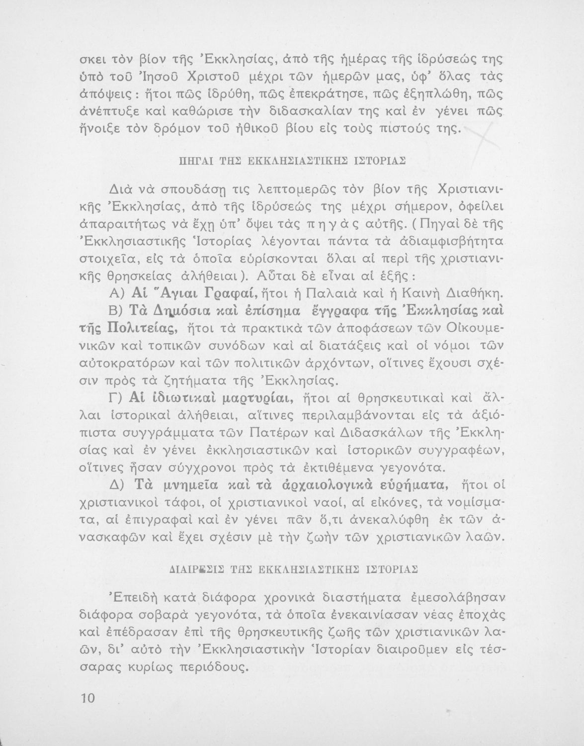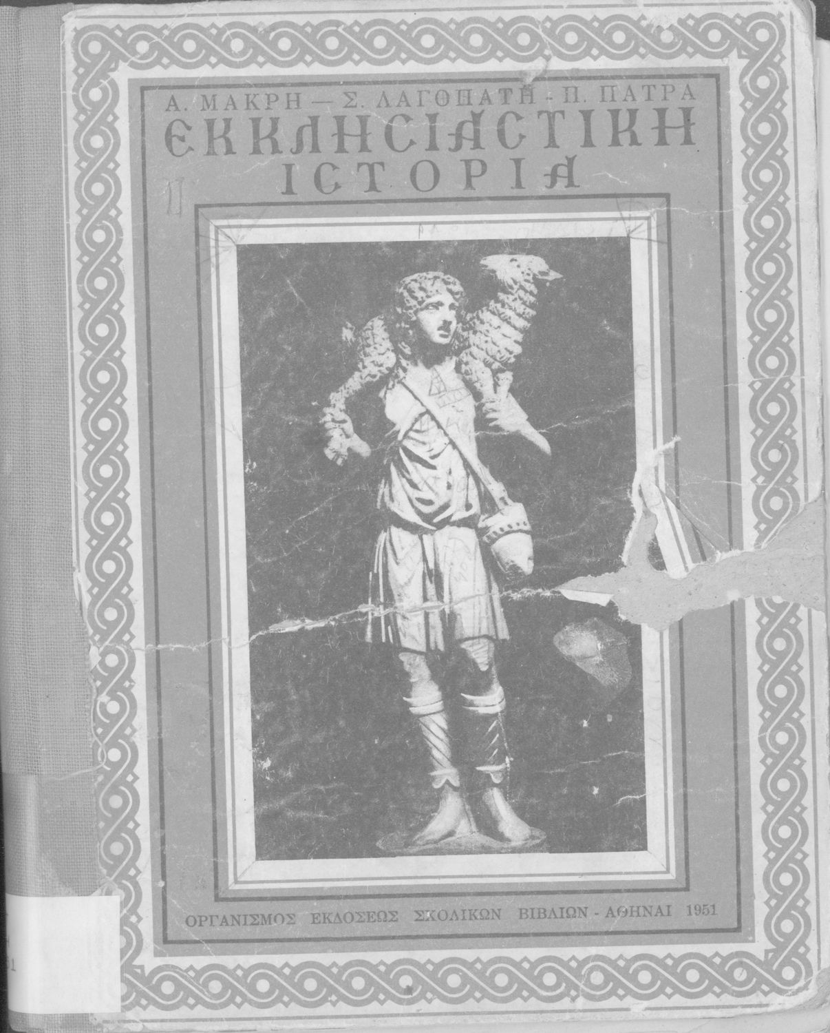 Σχολικό εγχειρίδιο Θρησκευτικών για την Δ' Γυμνασίου παλαιού τύπου που περιέχει την ιστορία της ορθόδοξης Εκκλησίας από την ίδρυσή της μέχρι την δημιουργία της Εκκλησίας της Ελλάδας.