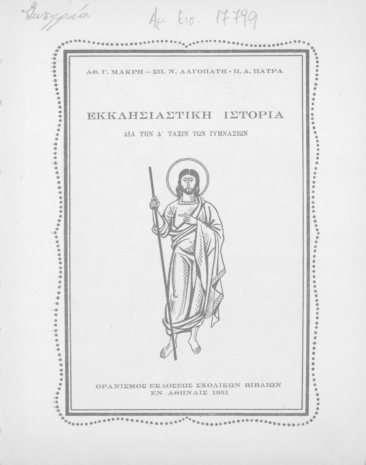 Τίτλος: Εκκλησιαστική ιστορία για την Δ΄ τάξη των Γυμνασίων