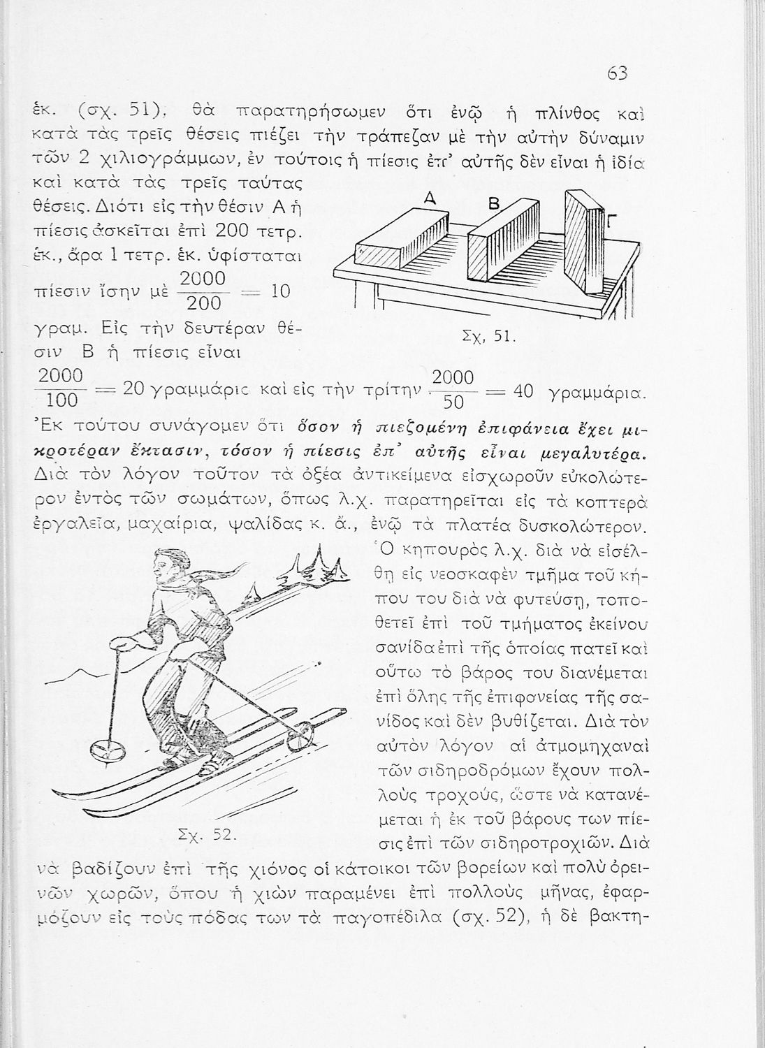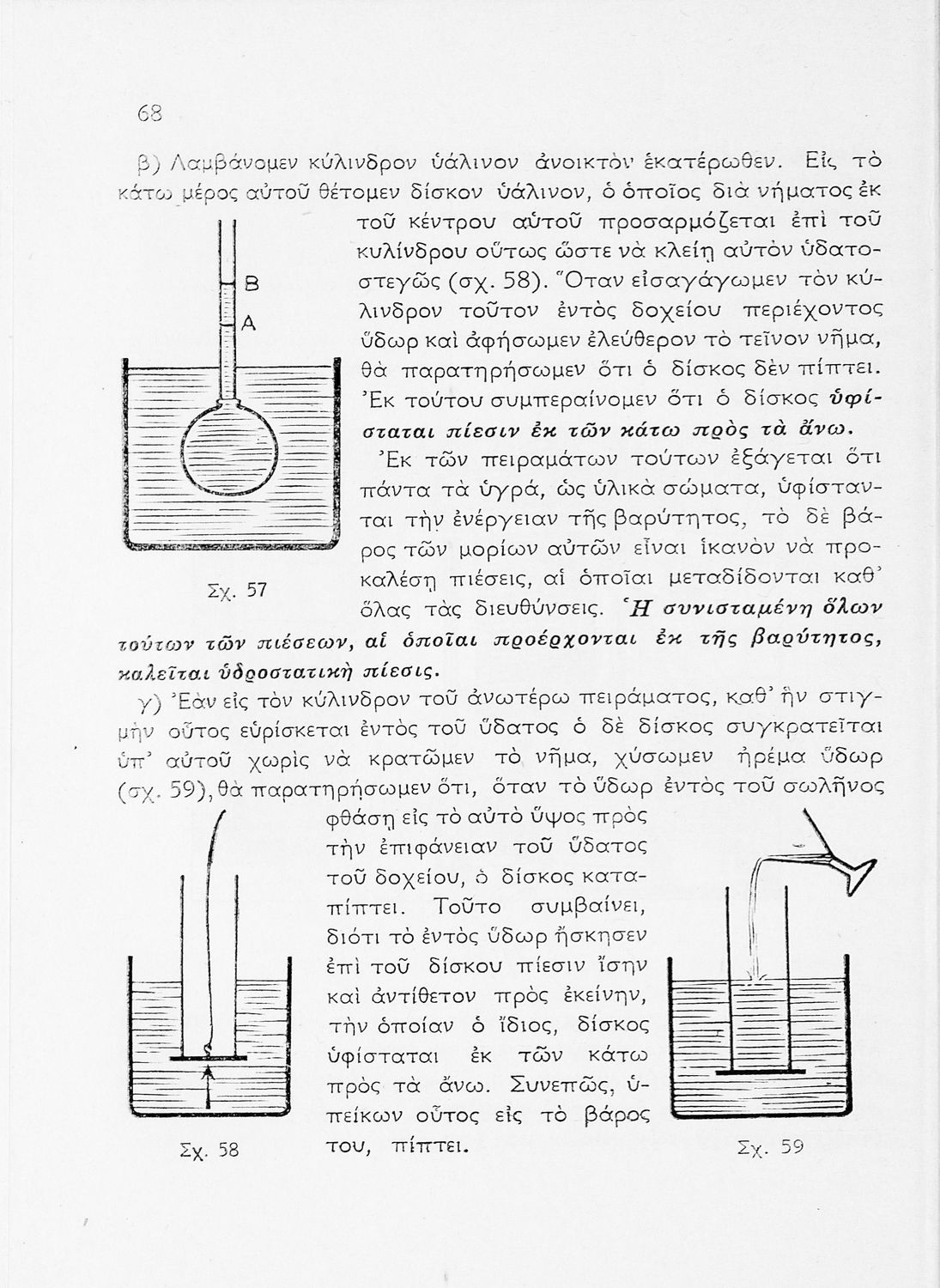 Σχολικό εγχειρίδιο της Ε΄ Γυμνασίου για το μάθημα της Φυσικής στο Γυμνάσιο . Παρέχει βασικές γνώσεις της φυσικής επιστήμης. Αναλύει τα φαινόμενα της μηχανικής, της κινητικής, της βαρύτητας, της υδροστατικής της αεροστατικής, της θερμότητας και τέλος της μετεωρολογίας. όσον αφορά τη Χημεία αναφέρεται στις ιδιότητες των μετάλλων, τα οξέα, τις βάσεις και τα άλατα. Αναφέρεται στην πρακτική εφαρμογή της φυσικής και της χημείας στην καθημερινότητά. Επίσης, περιλαμβάνει πολλά από τα όργανα, που χρησιμοποιούνται στη φυσική. Περιέχει εικόνες και σχεδιαγράμματα τα οποία βοηθούν τη διδασκαλία.