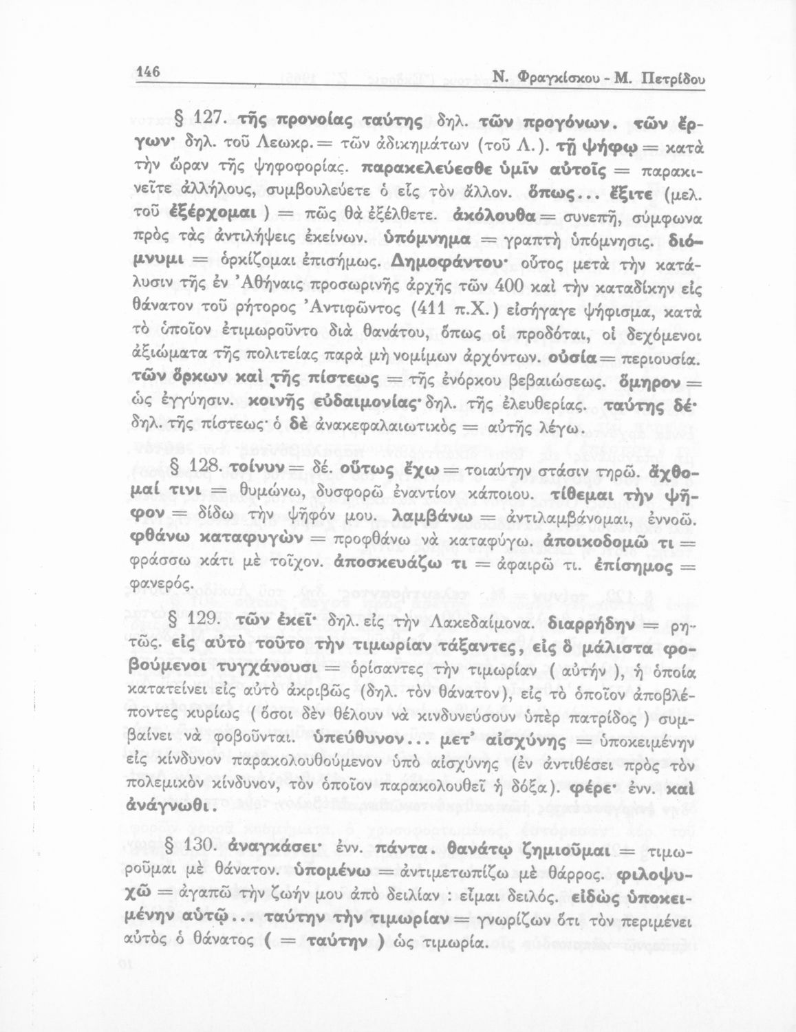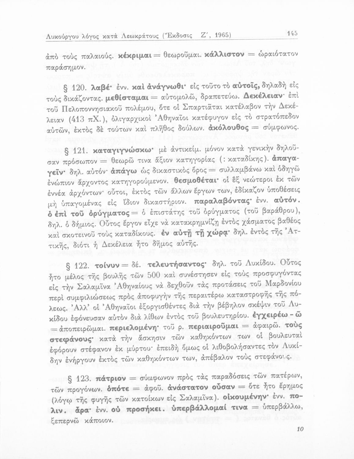 Δημοσθένης, Λυκούργος, Ισοκράτης, Κυριάκος Κοσμάς, Νικ. Φραγκίσκος, Μιχ. Περίδης, Γ. Παπαοικονόμου (σχόλια)