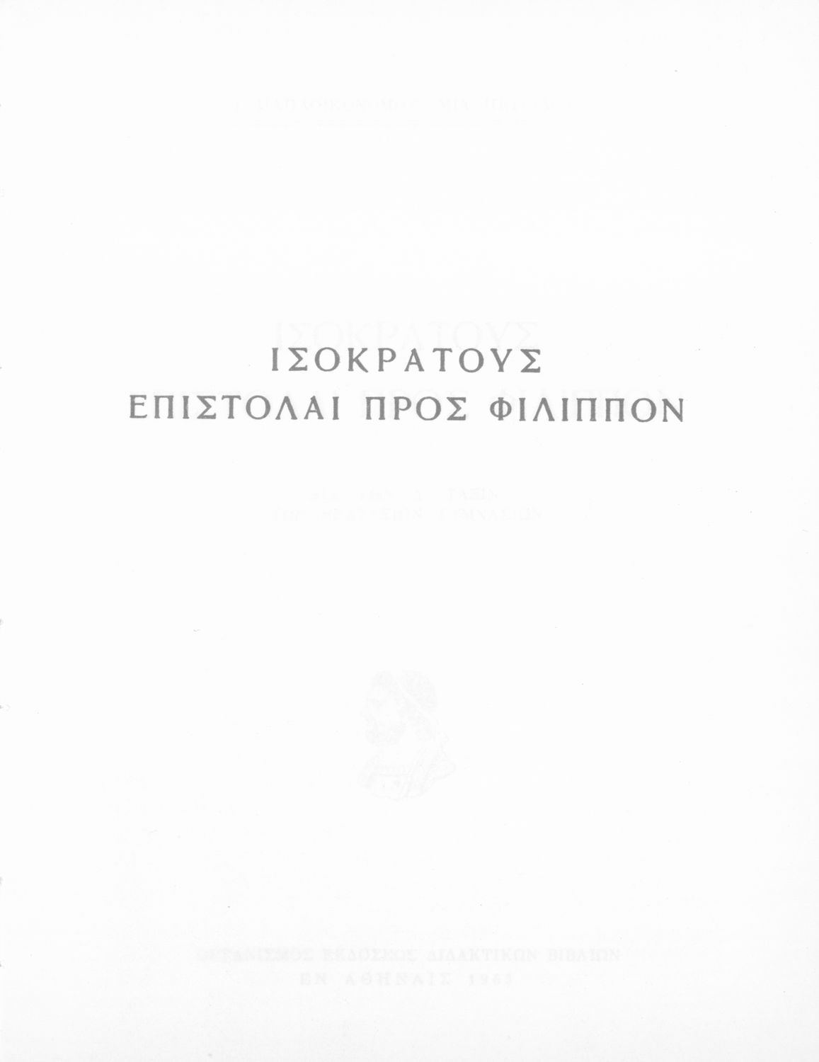 Μαθητικό βοήθημα Αρχαίων Ελληνικών ΣΤ΄ Γυμνάσιου περιέχει τον Λόγο κατά Λεωκράτους του Λυκούργου και τις Α΄ και Β΄ επιστολές προς Φίλιππον του Ισοκράτη σε μετάφραση, και ερμηνευτικά και πραγματολογικά σχόλια ...