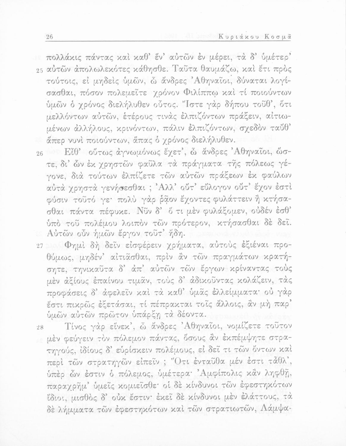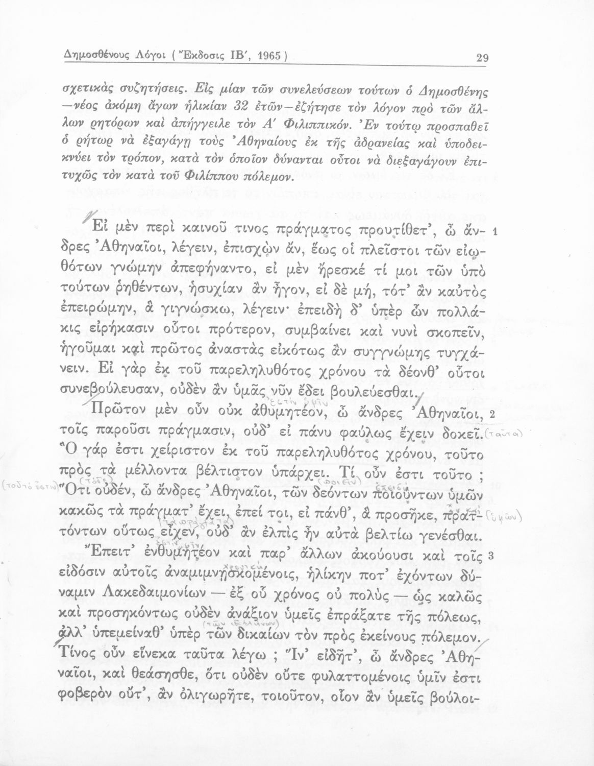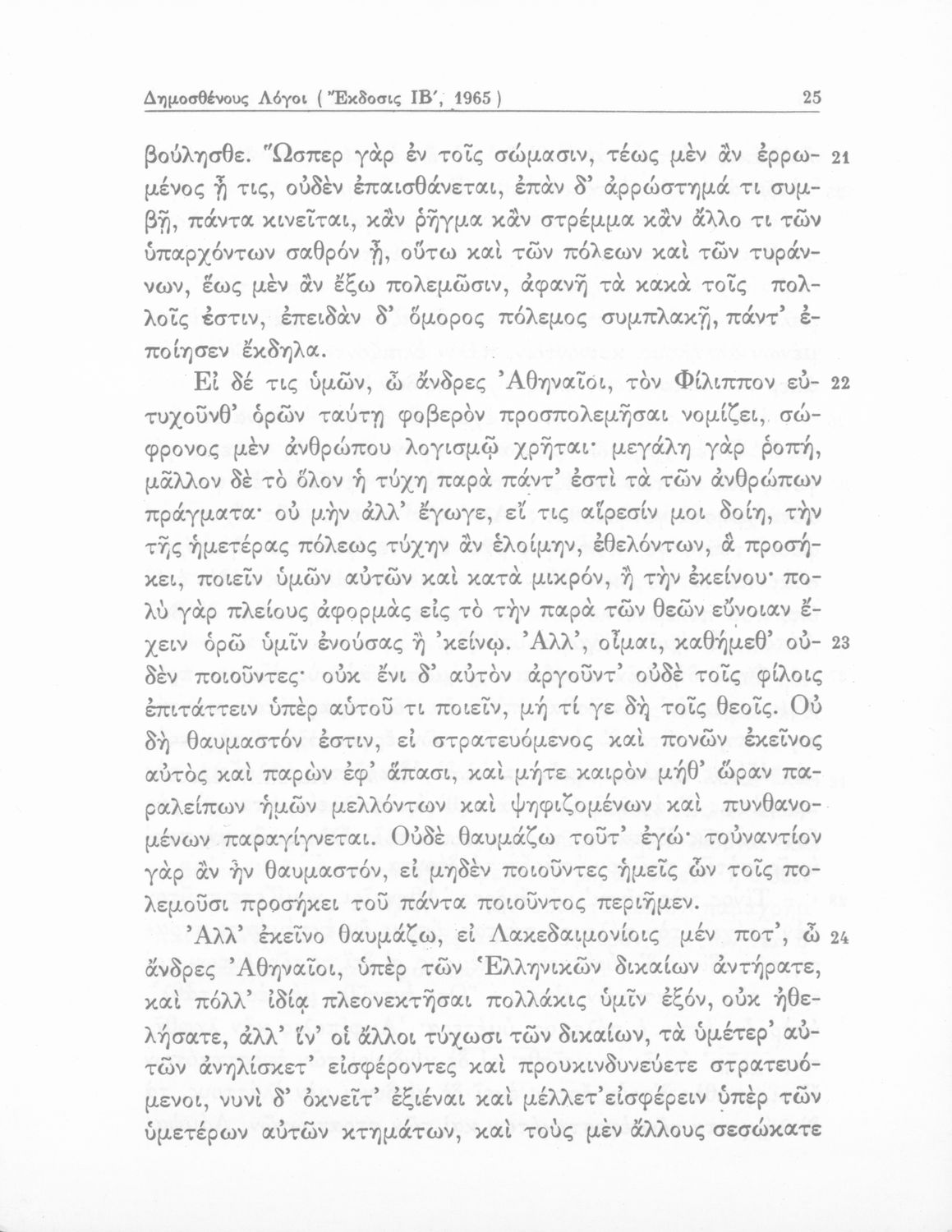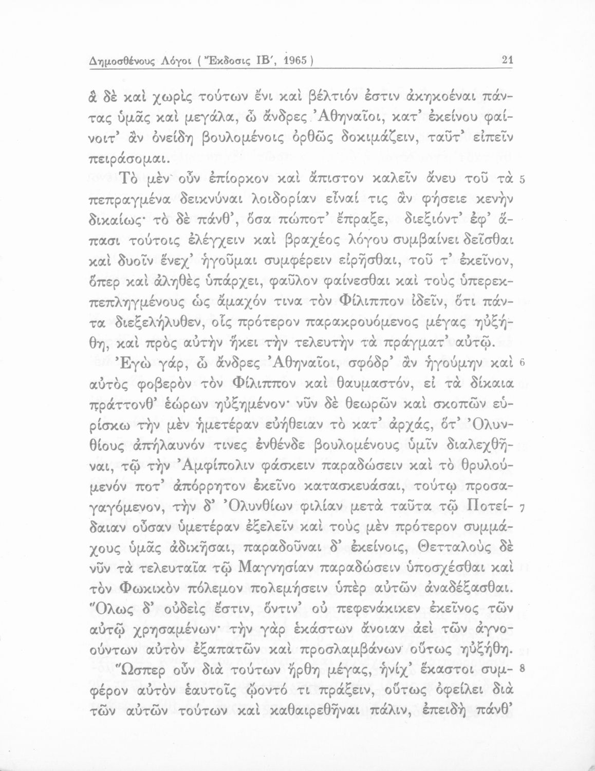 Σχολικό εγχειρίδιο Αρχαίων Ελληνικών Δ΄ Γυμνασίου που περιέχει τους Ολυνθιακούς Α΄ και Β΄ και τους Φιλιππικούς Α΄ και Β΄ του Δημοσθένη, το Λόγο κατά Λεωκράτους του Λυκούργου και τις Επιστολές προς Φίλιππο του Ισοκράτη, και ερμηνευτικά και ετυμολογικά σχόλια.