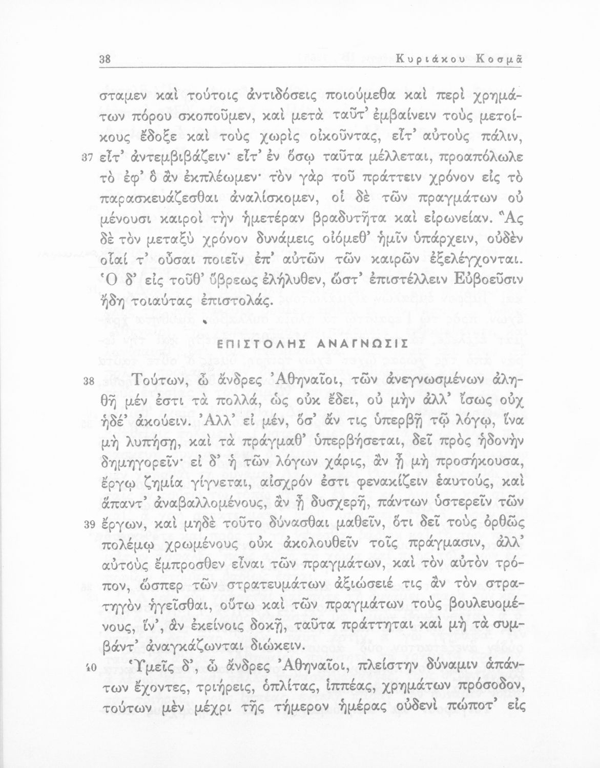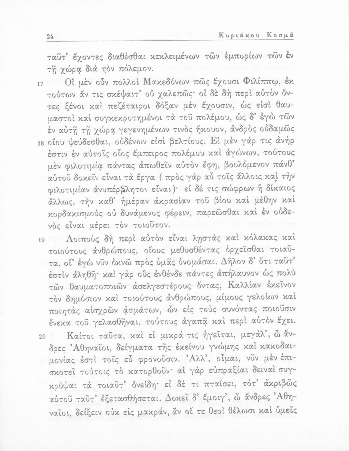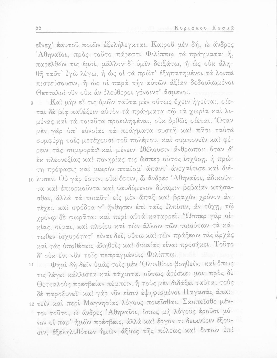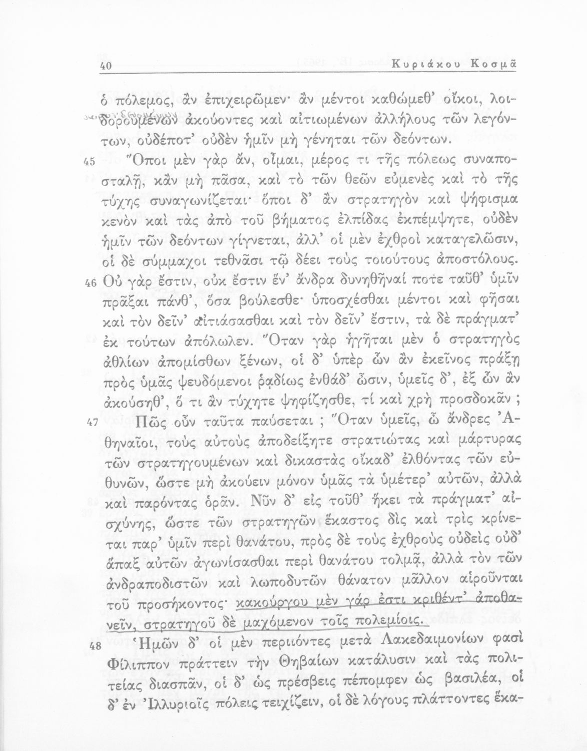Σχολικό εγχειρίδιο Αρχαίων Ελληνικών Δ΄ Γυμνασίου που περιέχει τους Ολυνθιακούς Α΄ και Β΄ και τους Φιλιππικούς Α΄ και Β΄ του Δημοσθένη, το Λόγο κατά Λεωκράτους του Λυκούργου και τις Επιστολές προς Φίλιππο του Ισοκράτη, και ερμηνευτικά και ετυμολογικά σχόλια.