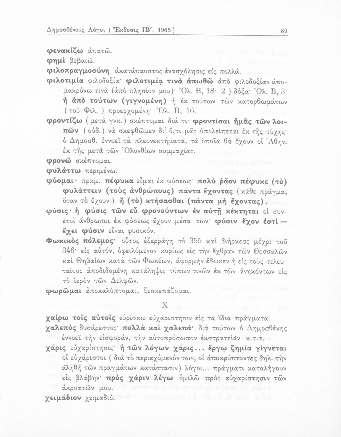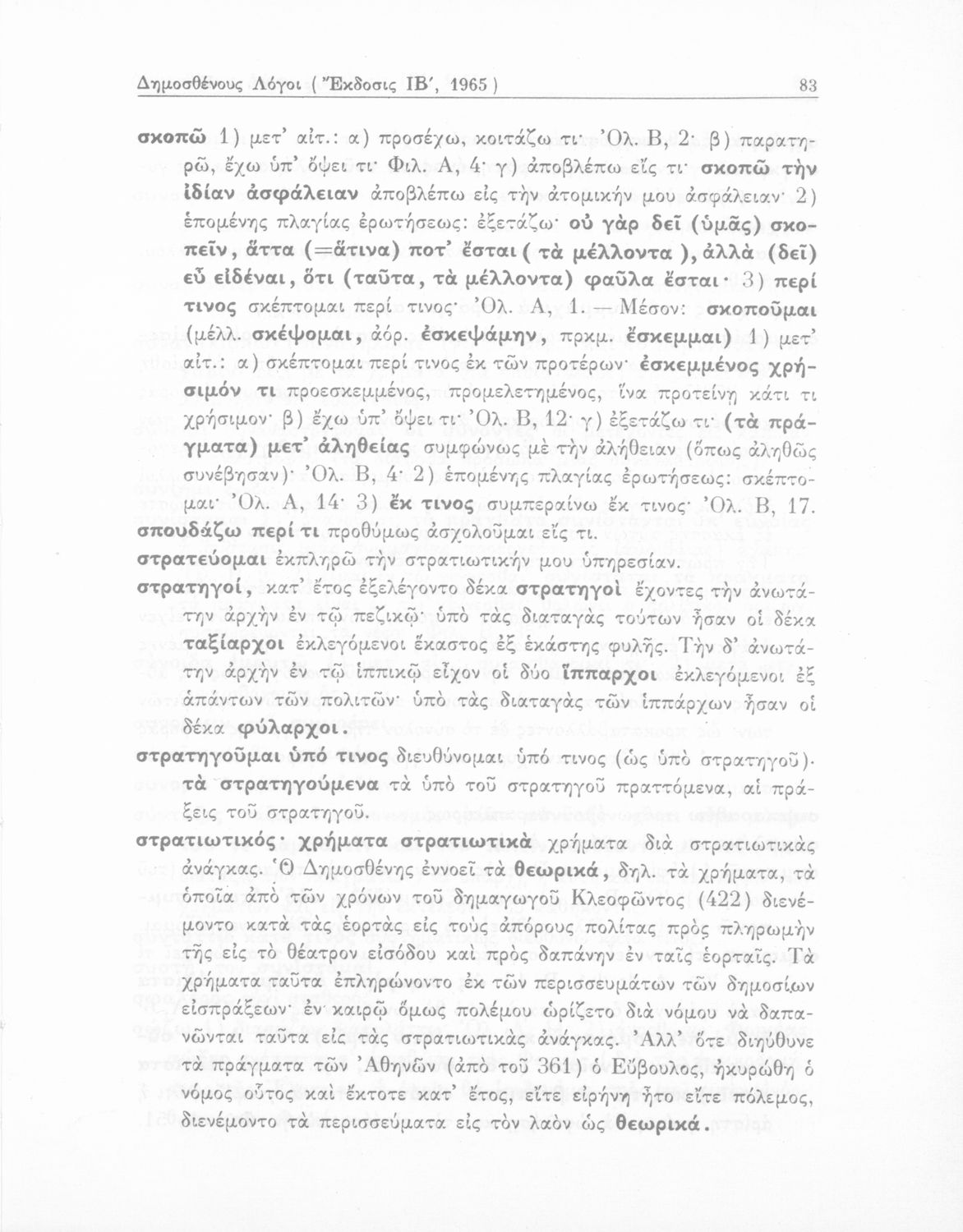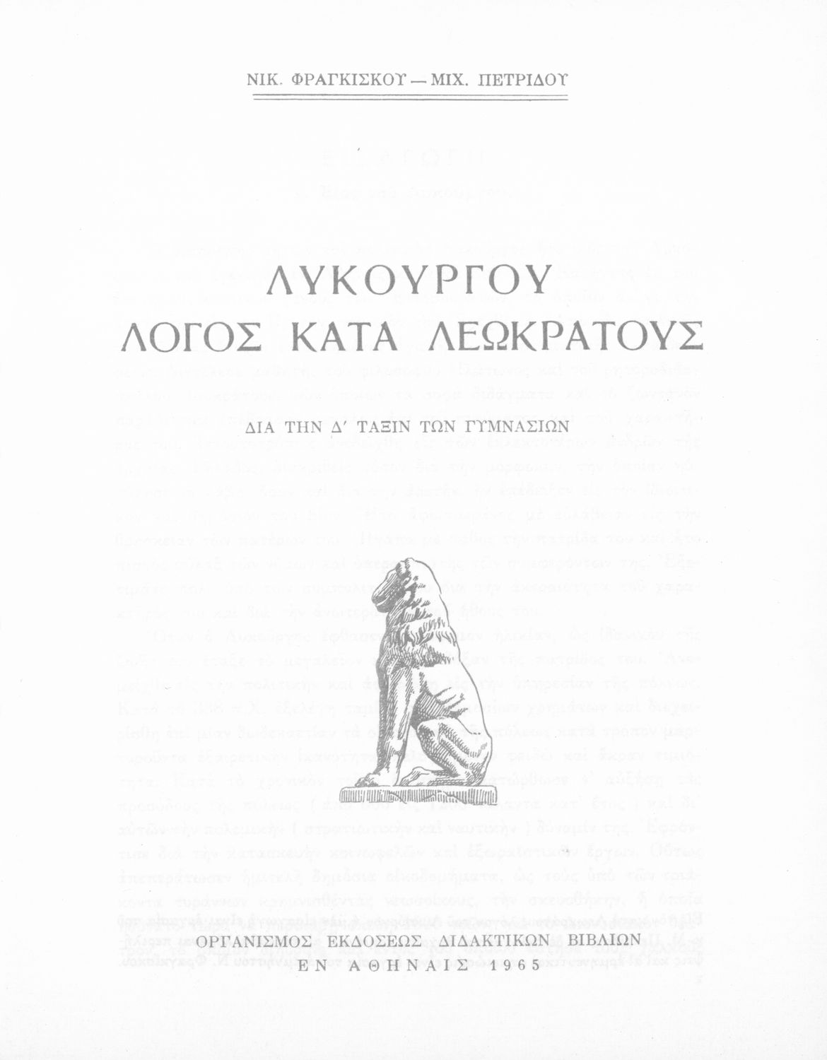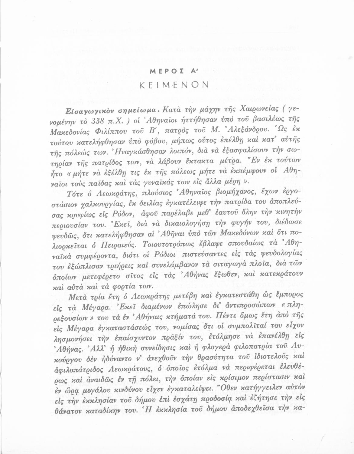 Σχολικό εγχειρίδιο Αρχαίων Ελληνικών Δ΄ Γυμνασίου που περιέχει τους Ολυνθιακούς Α΄ και Β΄ και τους Φιλιππικούς Α΄ και Β΄ του Δημοσθένη, το Λόγο κατά Λεωκράτους του Λυκούργου και τις Επιστολές προς Φίλιππο του Ισοκράτη, και ερμηνευτικά και ετυμολογικά σχόλια.