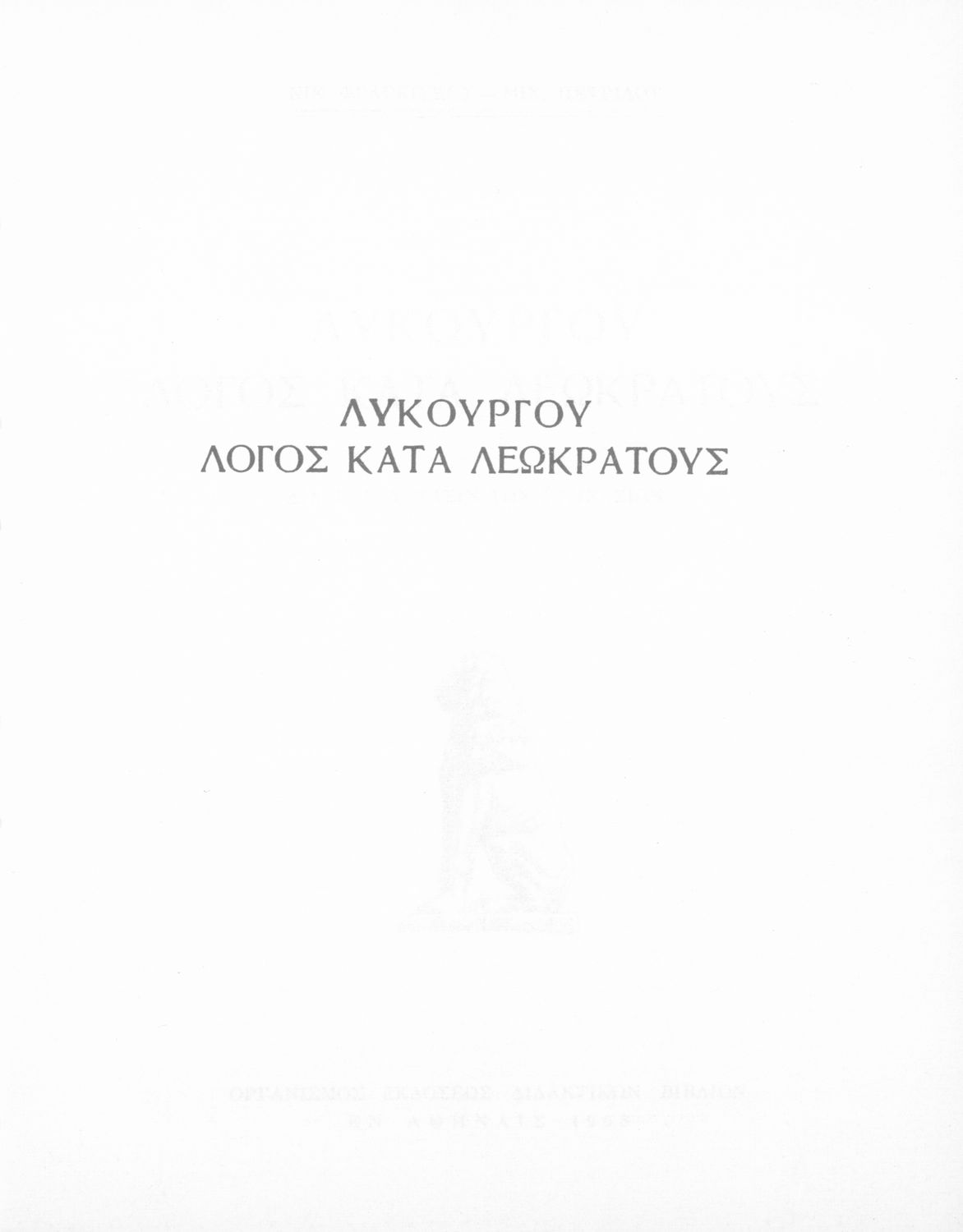 Βαθμίδα εκπαίδευσης: Δευτεροβάθμια Τάξη: Δ' Γυμνασίου Μάθημα: Αρχαία Ελληνικά Γλώσσα: Απλή καθαρεύουσα Παρουσίαση περιεχομένου: Σχολικό εγχειρίδιο Αρχαίων Ελληνικών Δ΄ Γυμνασίου που περιέχει τους Ολυνθιακούς Α΄ και Β΄ και τους Φιλιππικούς Α΄ και Β΄ του Δημοσθένη, το Λόγο κατά Λεωκράτους του Λυκούργου και τις Επιστολές προς Φίλιππο του Ισοκράτη, και ερμηνευτικά και ετυμολογικά σχόλια. |