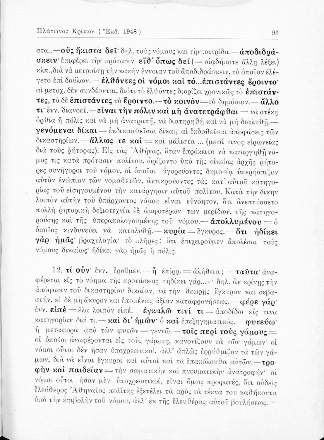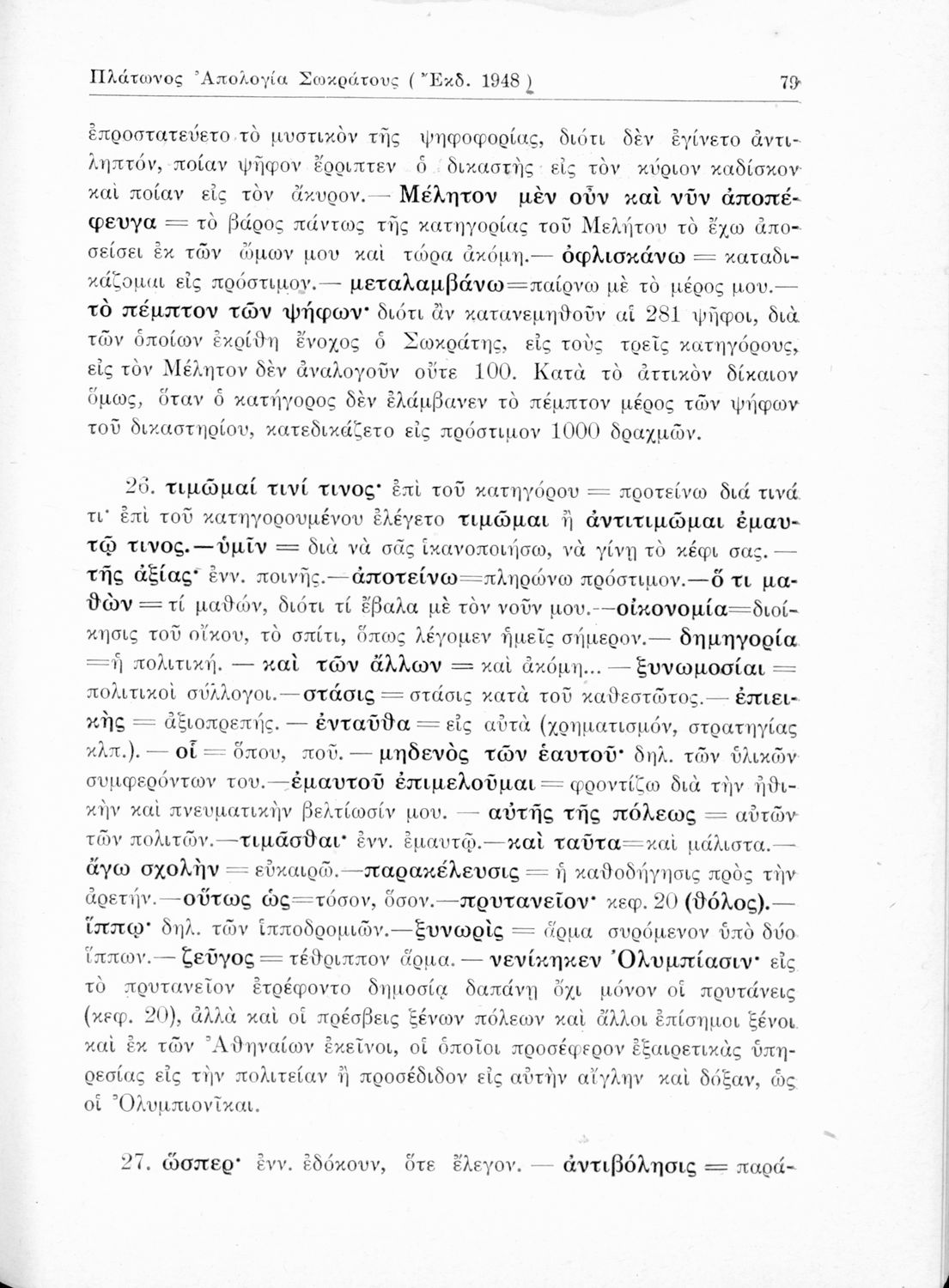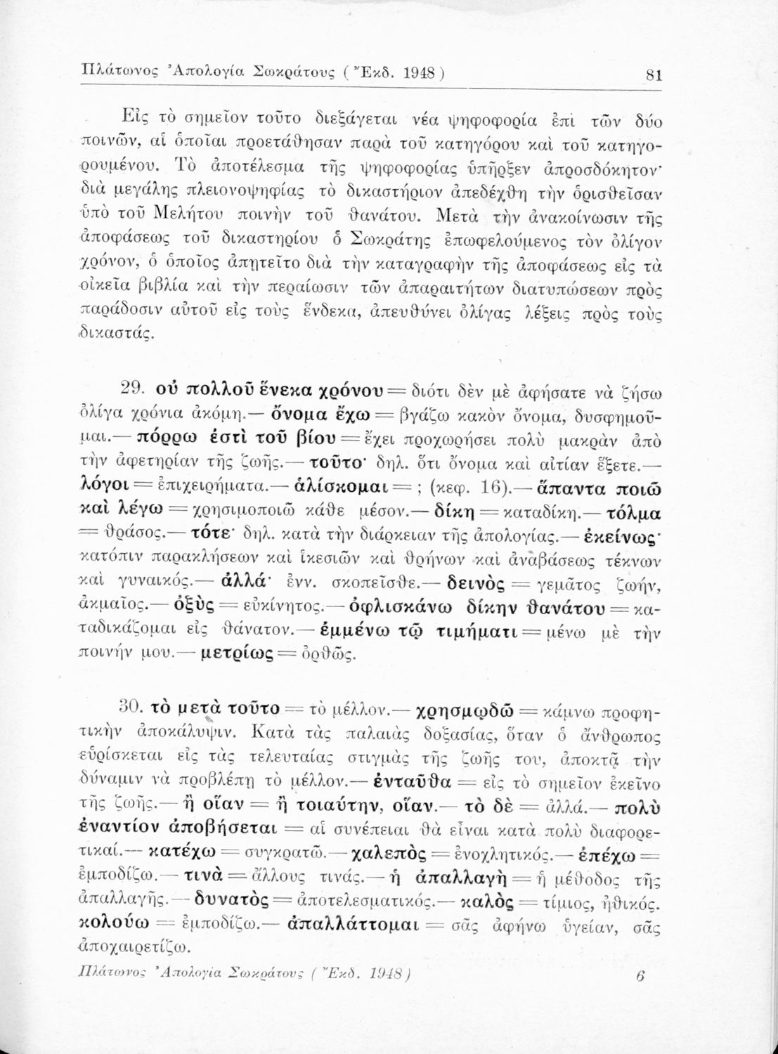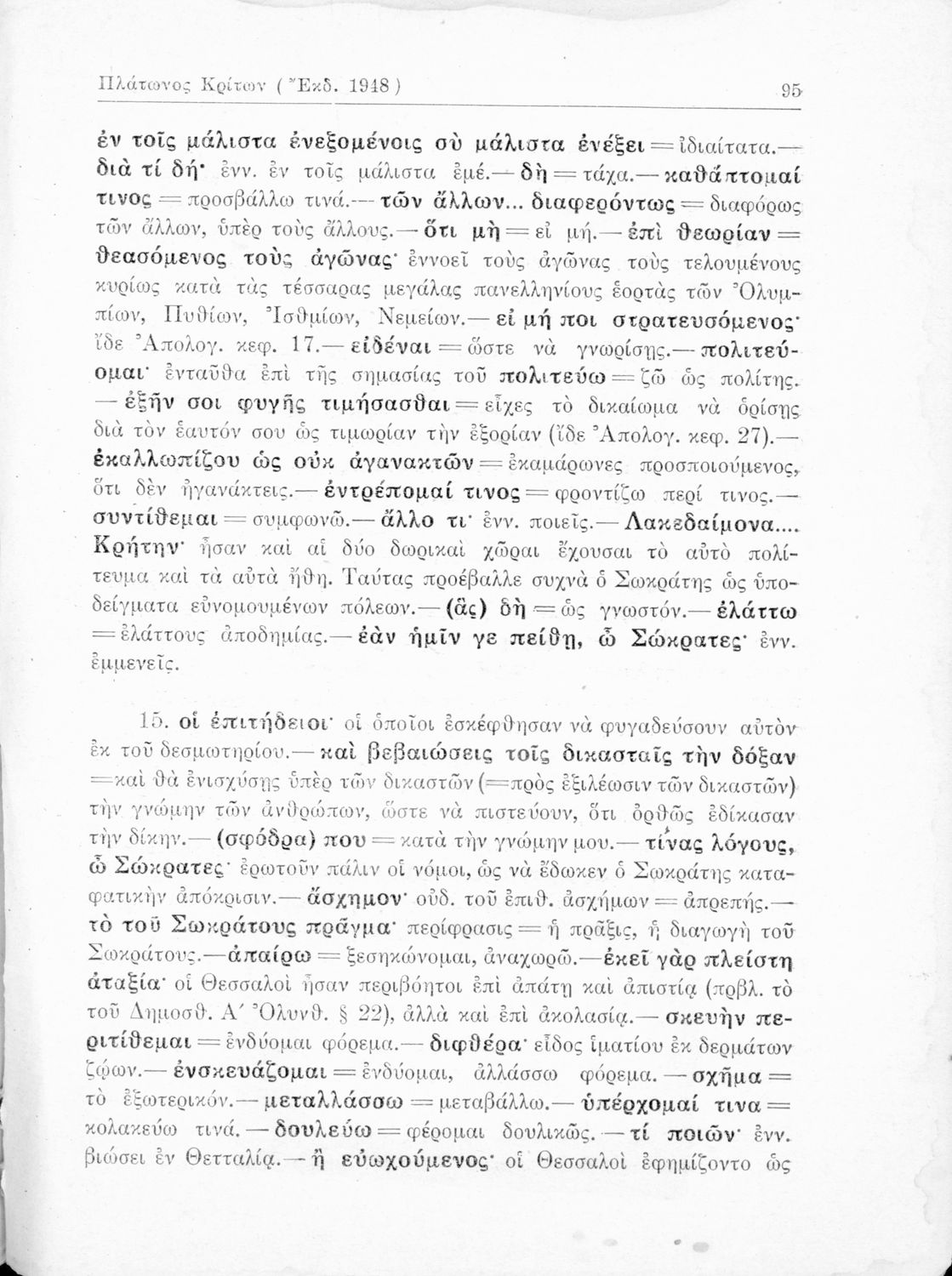 Σχολικό εγχειρίδιο της Ε΄ Γυμνασίου για το μάθημα των Αρχαίων Ελληνικών. Περιέχει το πρωτότυπο κείμενο του Πλάτωνα από την απολογία του Κρίτωνα με ερμηνευτικά, πραγματολογικά σχόλια και λεξιλογικές παρατηρήσεις του συγγραφέα.