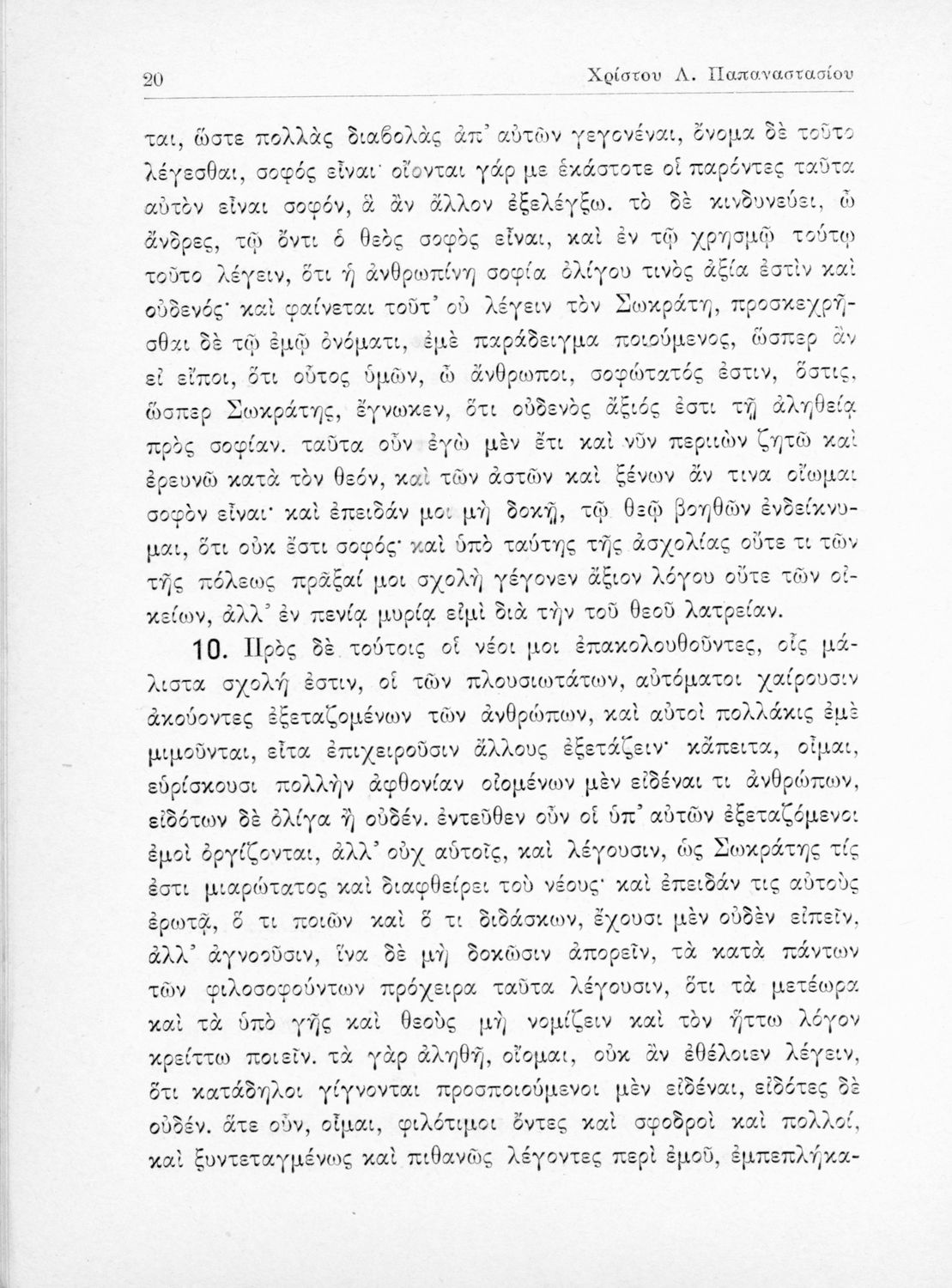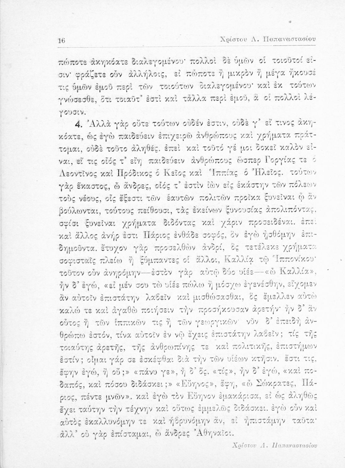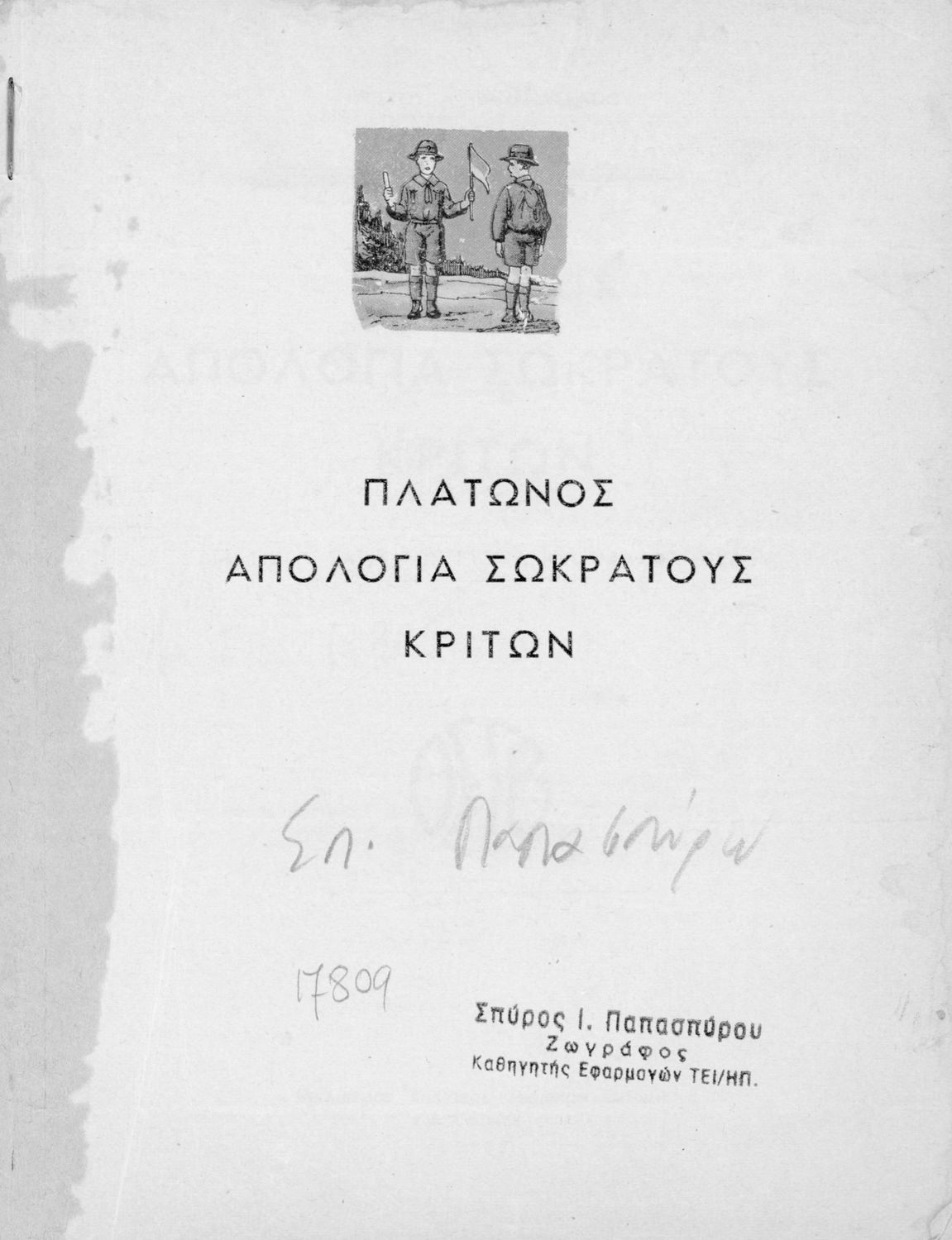Σχολικό εγχειρίδιο της Ε΄ Γυμνασίου για το μάθημα των Αρχαίων Ελληνικών. Περιέχει το πρωτότυπο κείμενο του Πλάτωνα από την απολογία του Κρίτωνα με ερμηνευτικά, πραγματολογικά σχόλια και λεξιλογικές παρατηρήσεις του συγγραφέα.