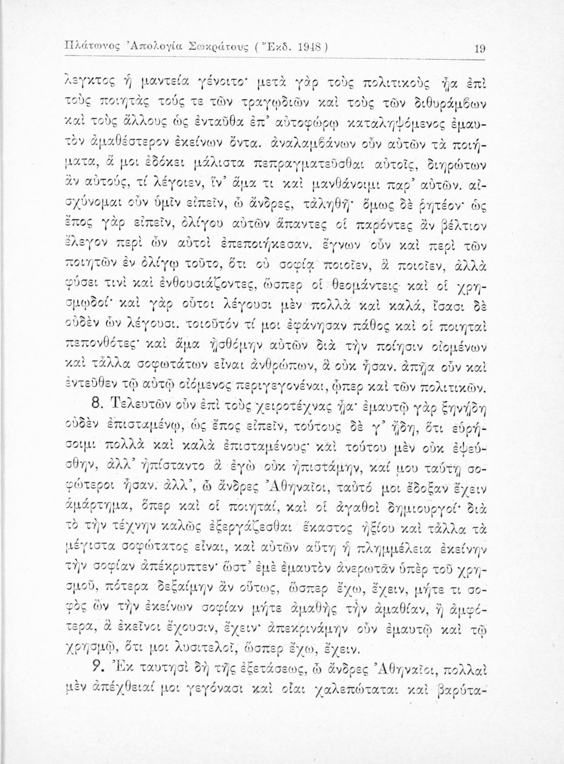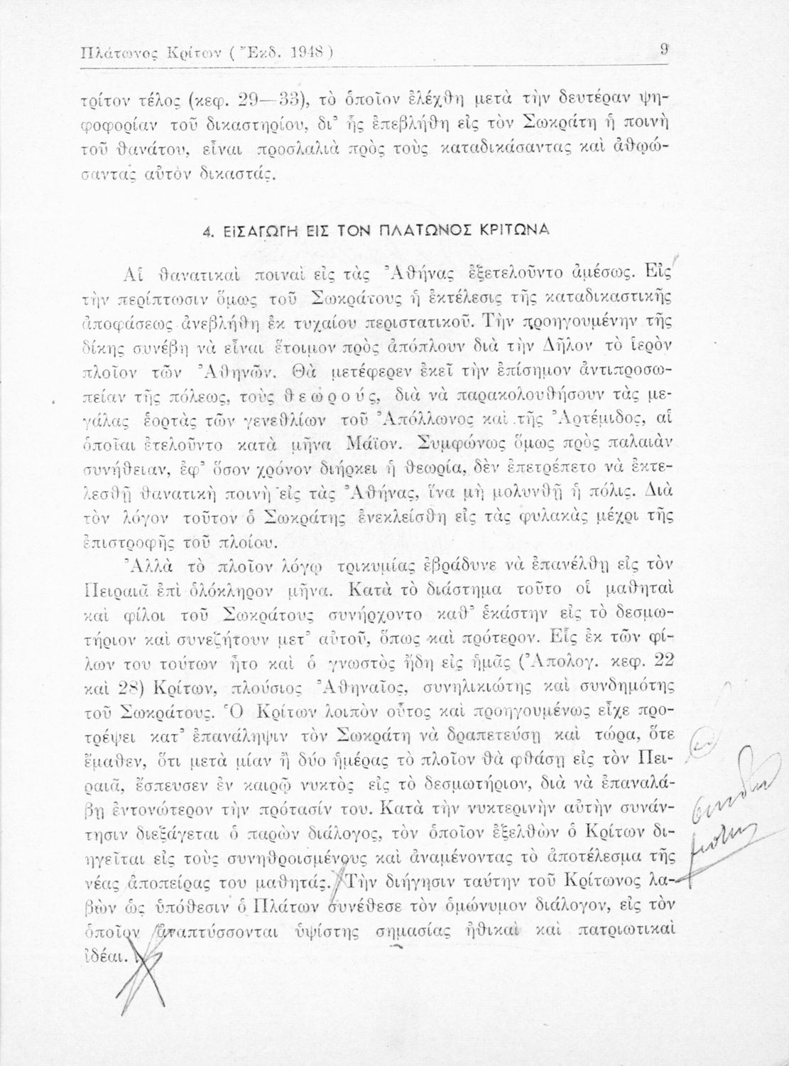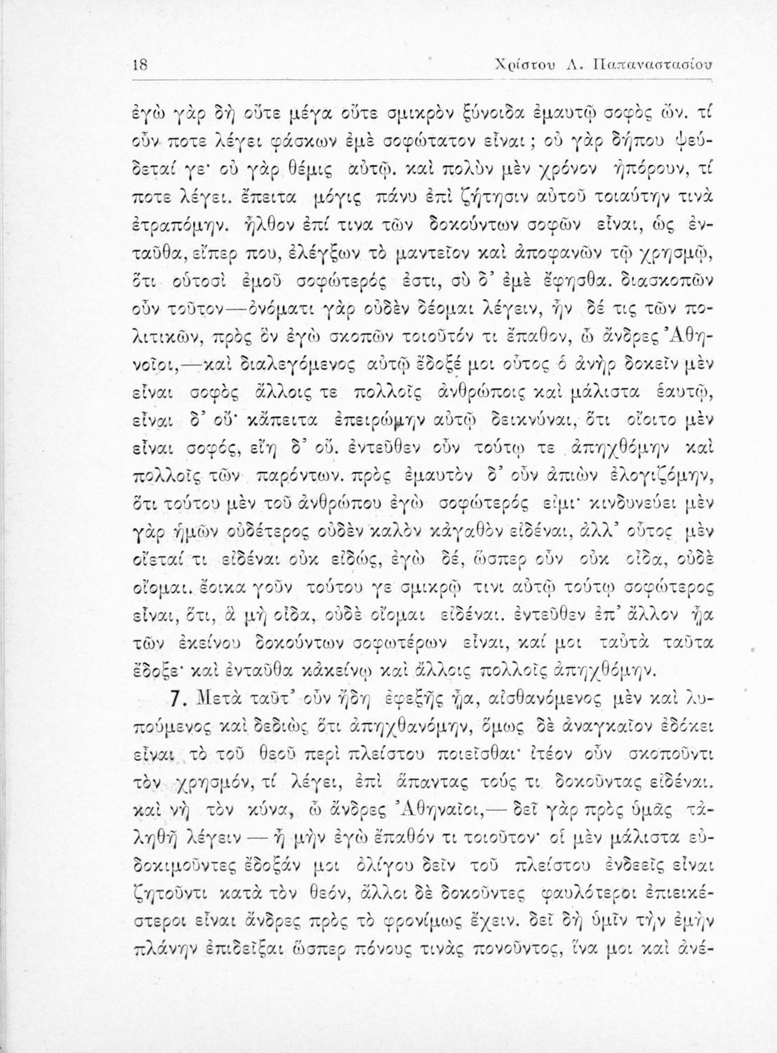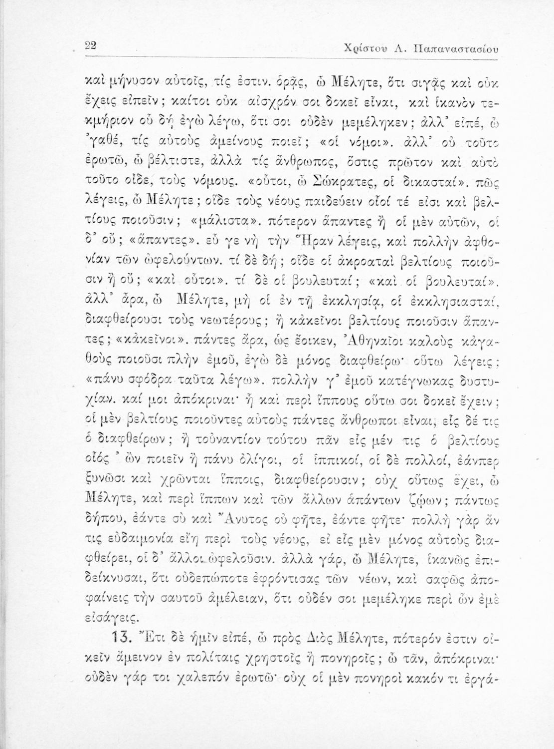 Σχολικό εγχειρίδιο της Ε΄ Γυμνασίου για το μάθημα των Αρχαίων Ελληνικών. Περιέχει το πρωτότυπο κείμενο του Πλάτωνα από την απολογία του Κρίτωνα με ερμηνευτικά, πραγματολογικά σχόλια και λεξιλογικές παρατηρήσεις του συγγραφέα.