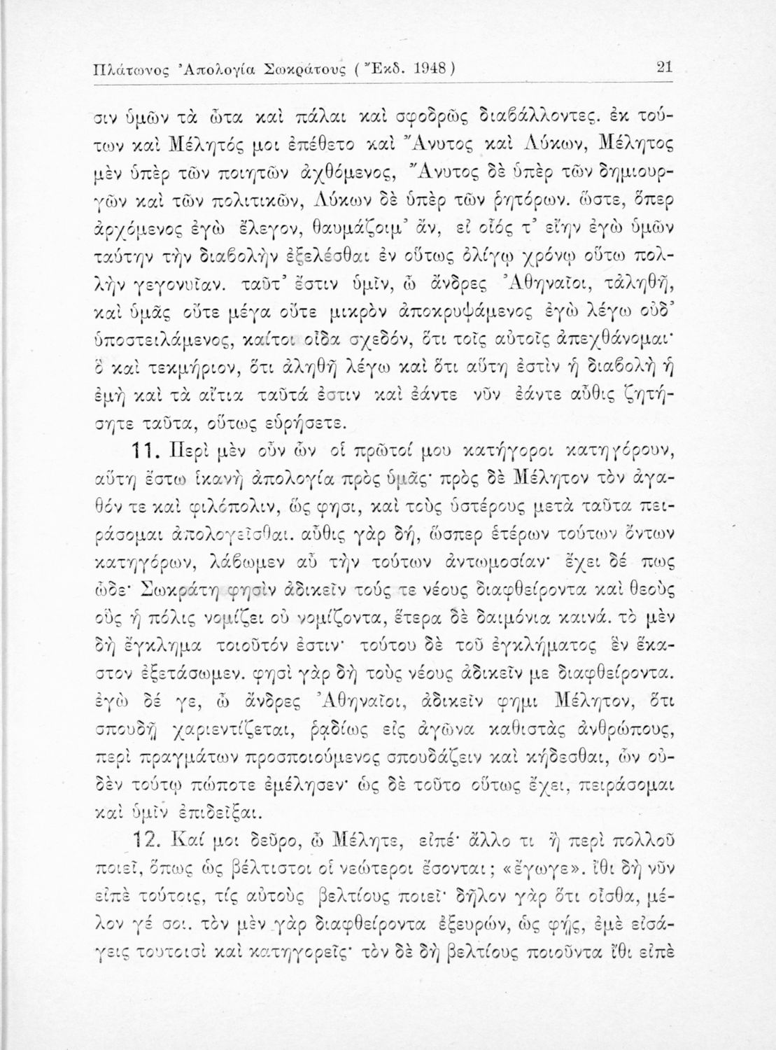 LDR 01303 2200193 4500 035 ## _a01-17809 040 ## _aΙνστιτούτο Εκπαιδευτικής Πολιτικής 041 ## _ael 100 ## _aΠλάτων _aΧρίστος Α. Παπαναστασίου (σχόλια) 110 ## _a17809 245 0# _aΠλάτωνος Απολογία Σωκράτους Κρίτων. Δια την Ε΄ Τάξιν Γυμνασίων Παλαιού Τύπου 260 ## _aΑθήνα _bΟργανισμός Εκδόσεως Σχολικών Βιβλίων _c1948 300 ## _a55 _bΣκίτσα και πίνακες (ασπρόμαυρα) 520 ## _aΣχολικό εγχειρίδιο της Ε΄ Γυμνασίου για το μάθημα των Αρχαίων Ελληνικών. Περιέχει το πρωτότυπο κείμενο του Πλάτωνα από την απολογία του Κρίτωνα με ερμηνευτικά, πραγματολογικά σχόλια και λεξιλογικές παρατηρήσεις του συγγραφέα. 521 ## _aΕ' Γυμνασίου 522 ## _aΕλλάδα 546 ## _aΑπλή καθαρεύουσα 563 ## _aΜαλακό Εξώφυλλο 650 #4 _aΑπολογία _aΚριτών _aΠλάτωνας _aΡητορική _aΣοφιστές