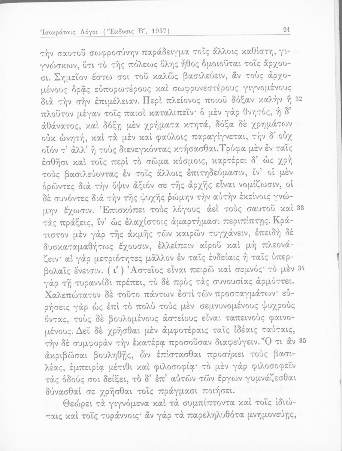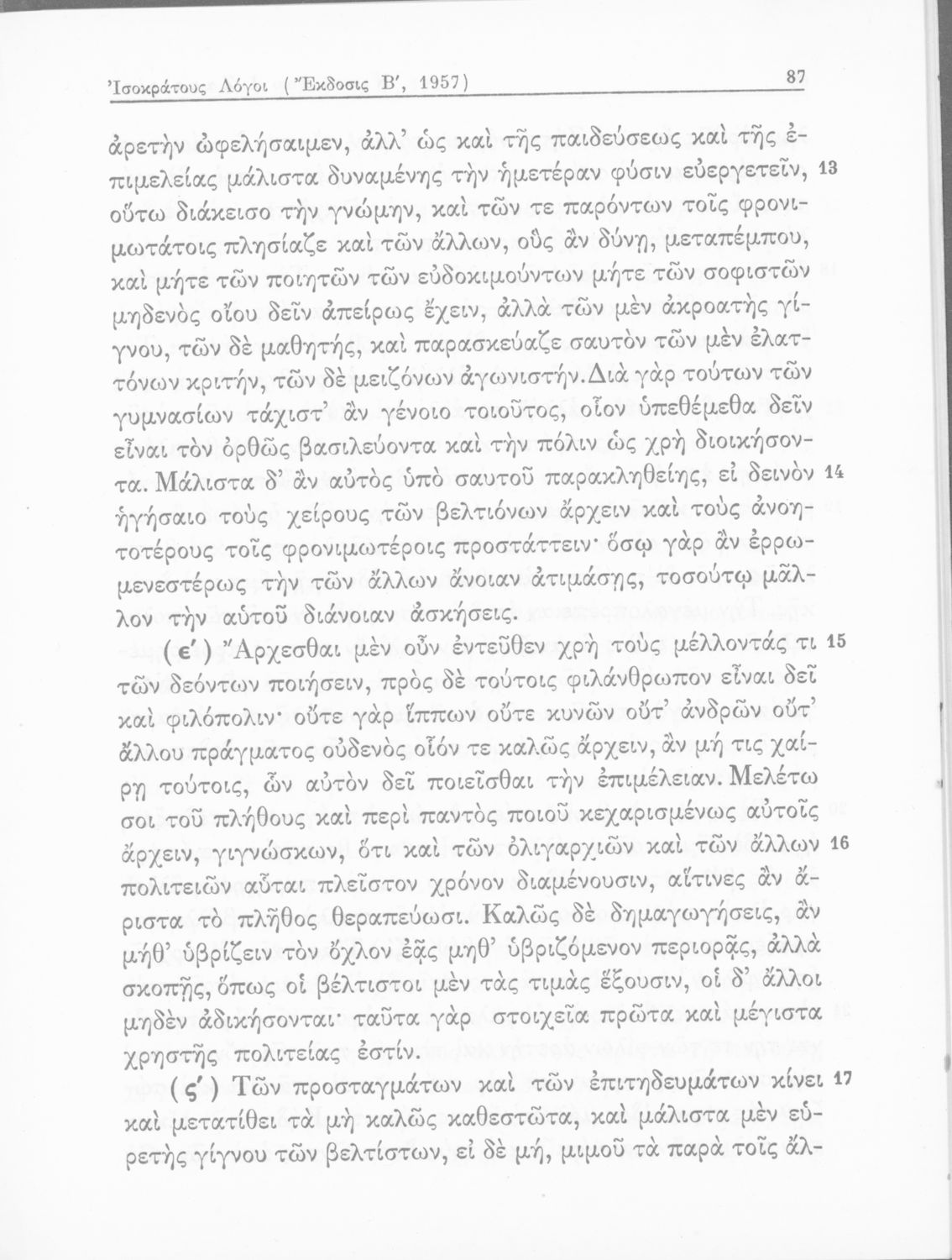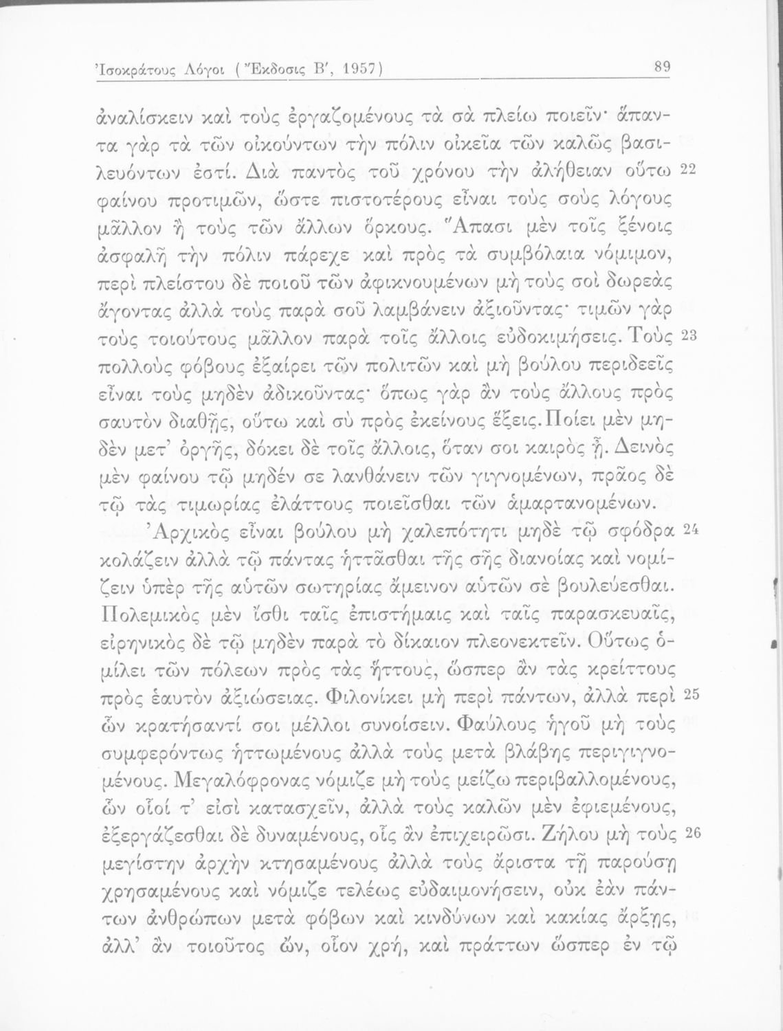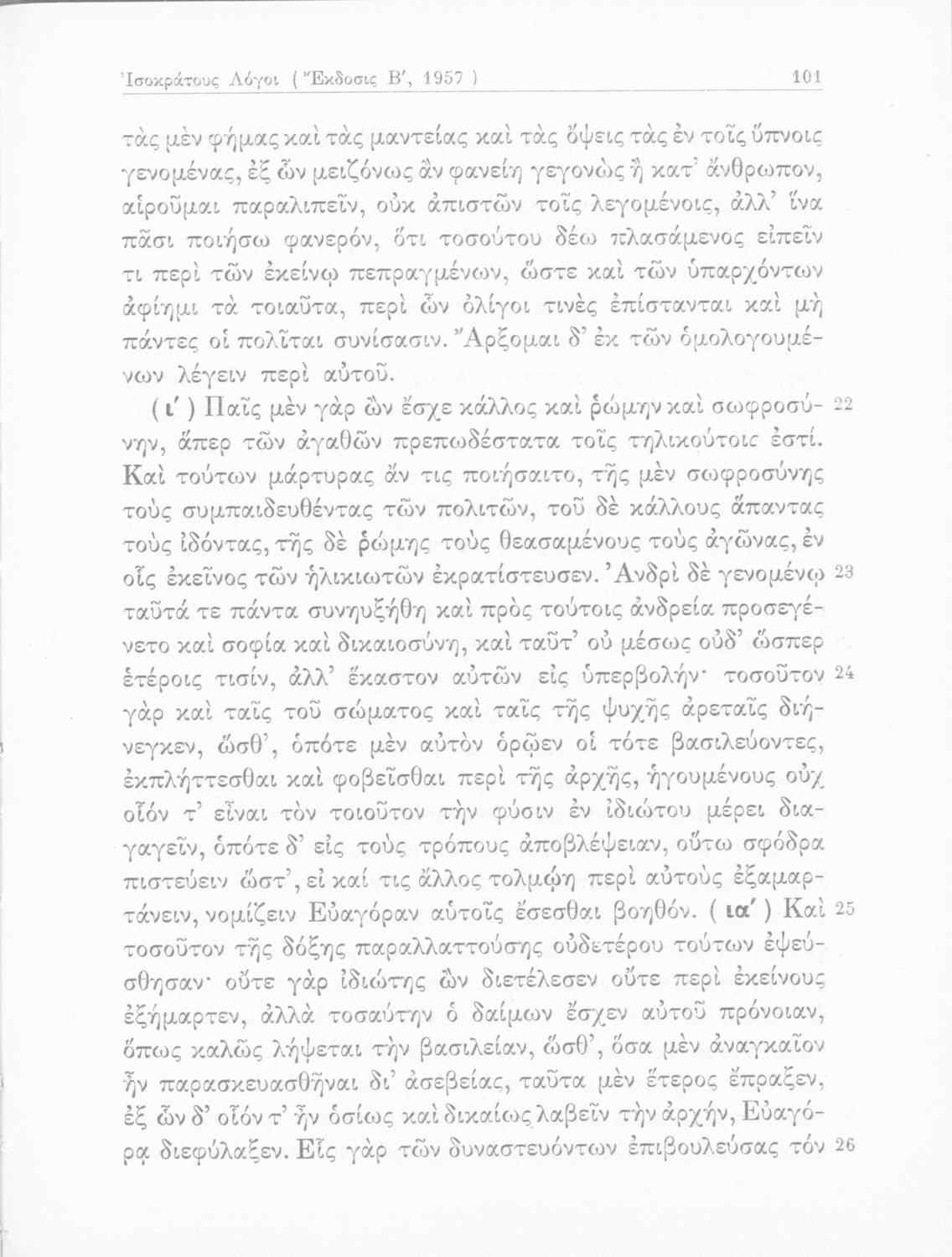 Σχολικό εγχειρίδιο Αρχαίων Ελληνικών που περιλαμβάνει τους Λόγους του Λυσία Περί του σηκού απολογία, Υπέρ του αδυνάτου, Κατά των σιτοπωλών και του Ισοκράτη Προς Δημόνικον, Προς Νικοκλέα και Ευαγόρας, εισαγωγή στους Λόγους και ερμηνευτικά σχόλια.